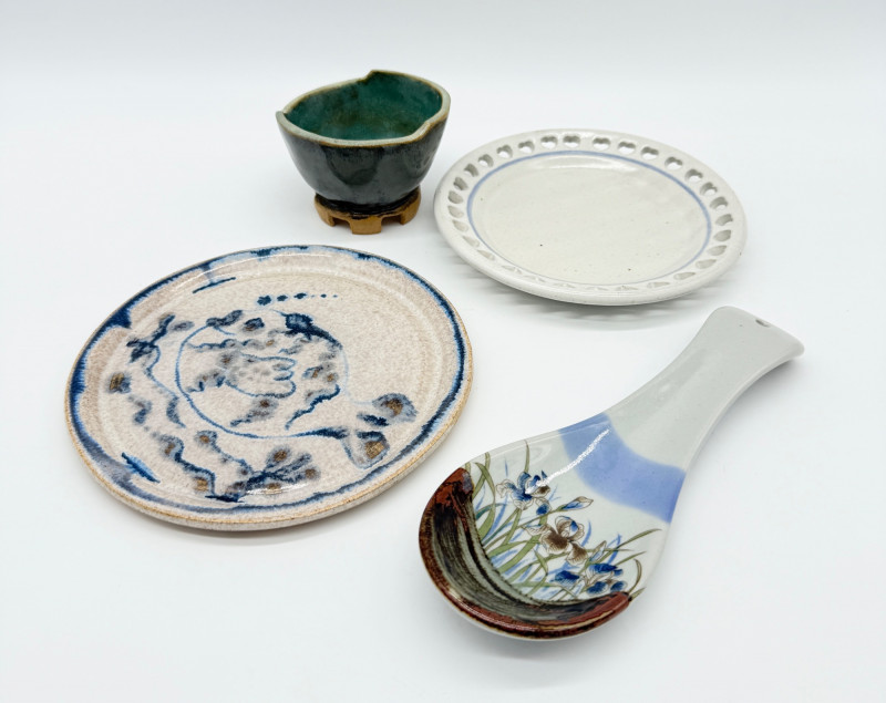Lot # 106 - Pottery Plates & Bowl + Ceramic Spoon Rest Starting Bid: $ 5.00 Bids: This sale will end in: |