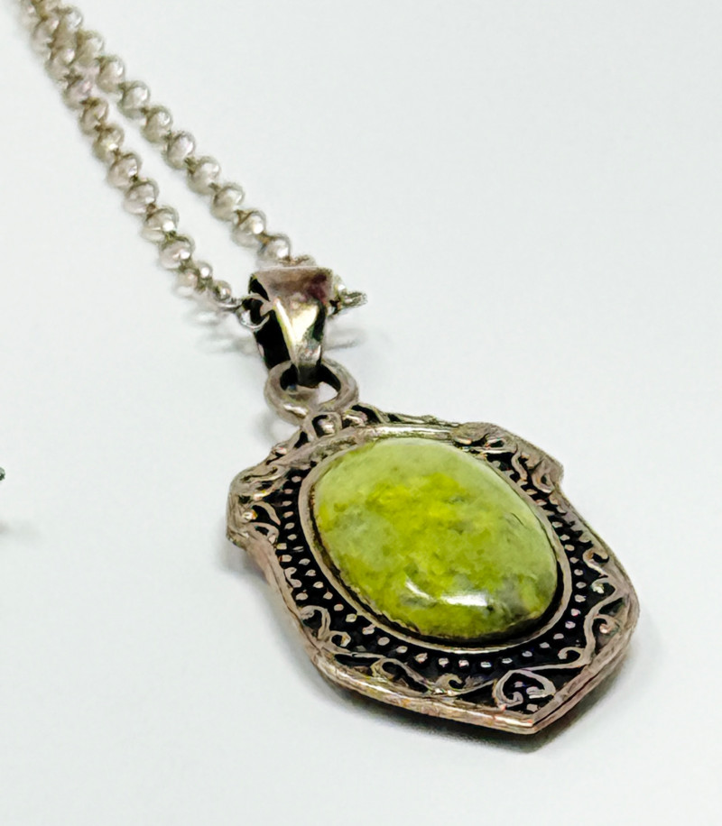 Sterling Silver Pearl Necklace w/ Mother of Pearl Pendant