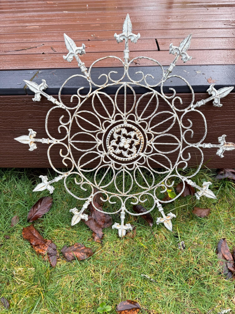 Lot # 111 - Distressed 25" Wrought Iron Wall Medallion Starting Bid: $ 5.00 Bids: This sale will end in: |