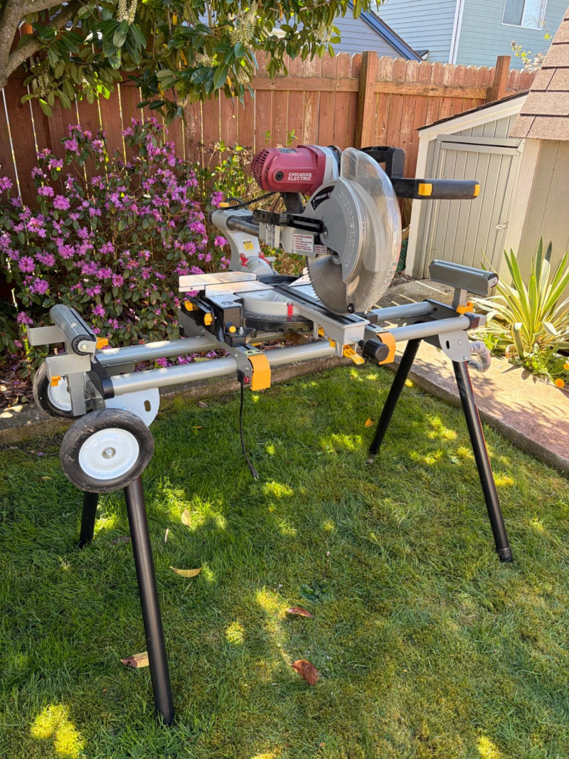 Lot # 11 - Chicago Electric 12" Sliding Compound Miter Saw on Rolling Stand Starting Bid: $ 5.00 Bids: This sale will end in: |
