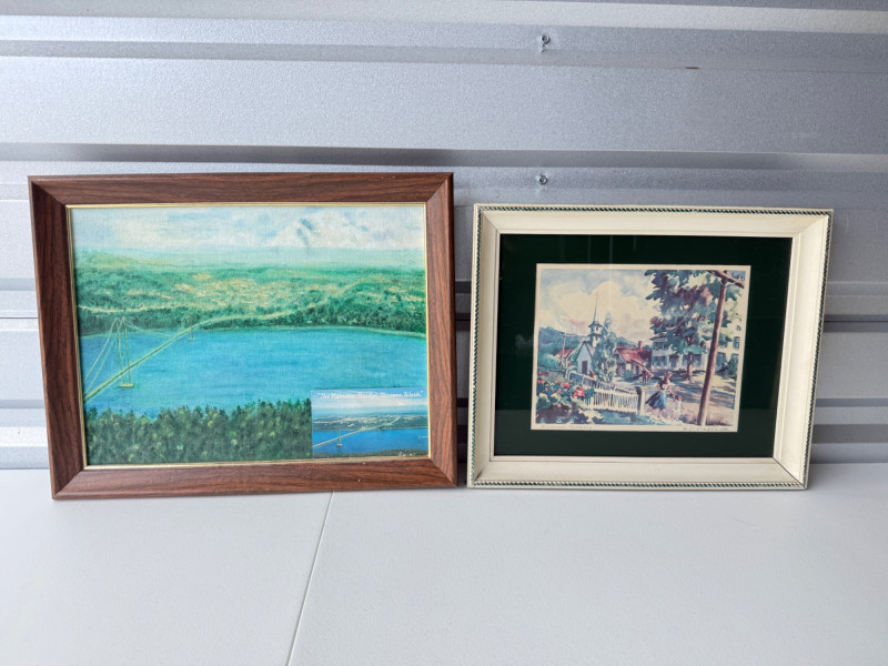 Set of Framed Art Pieces Water color piece is signed from unknown artist.