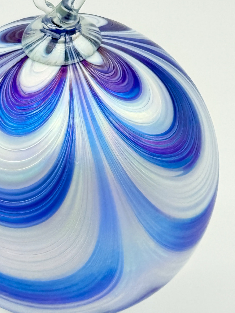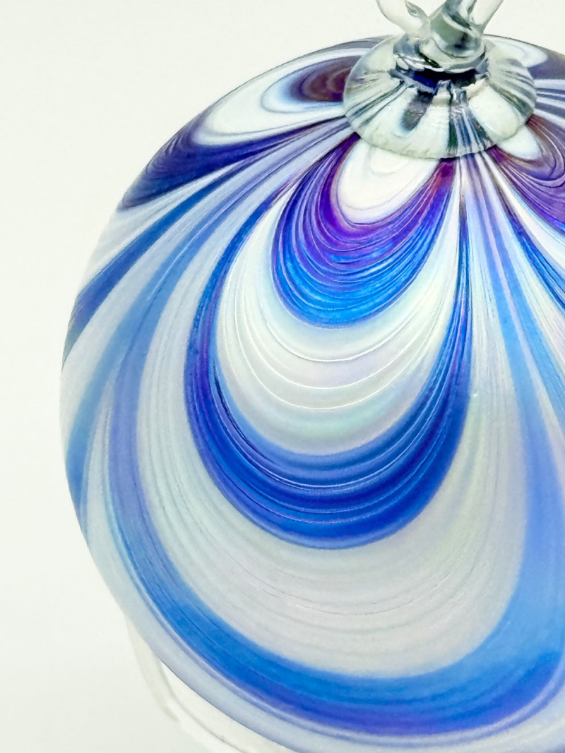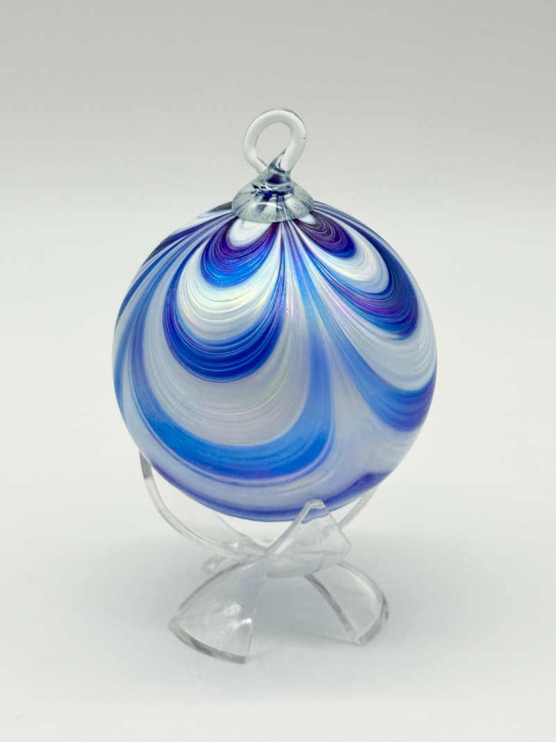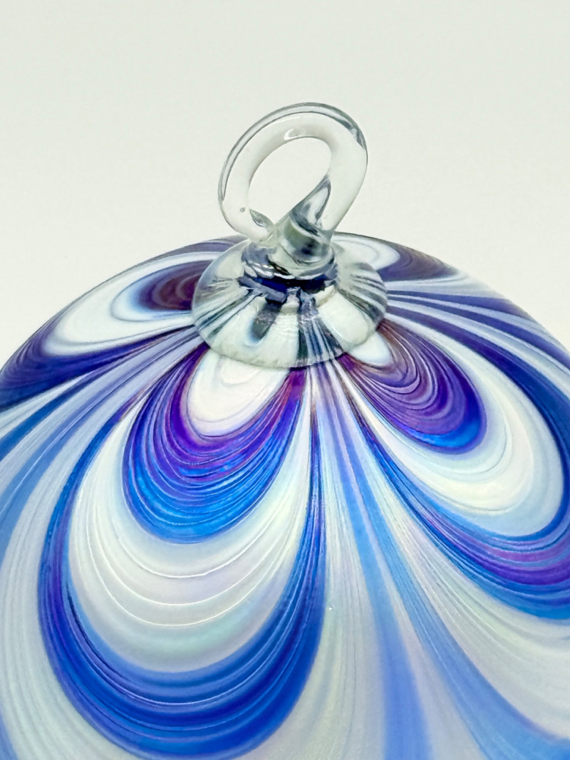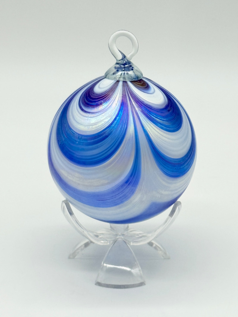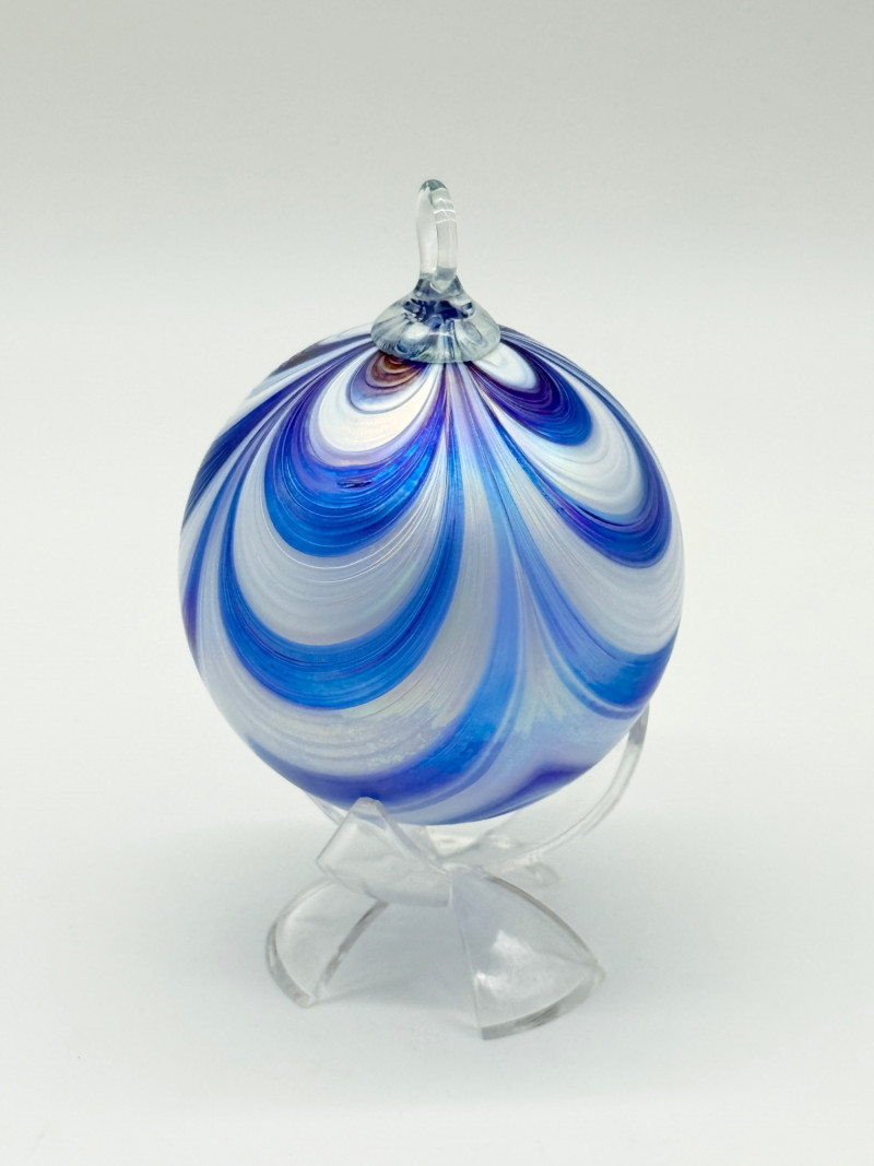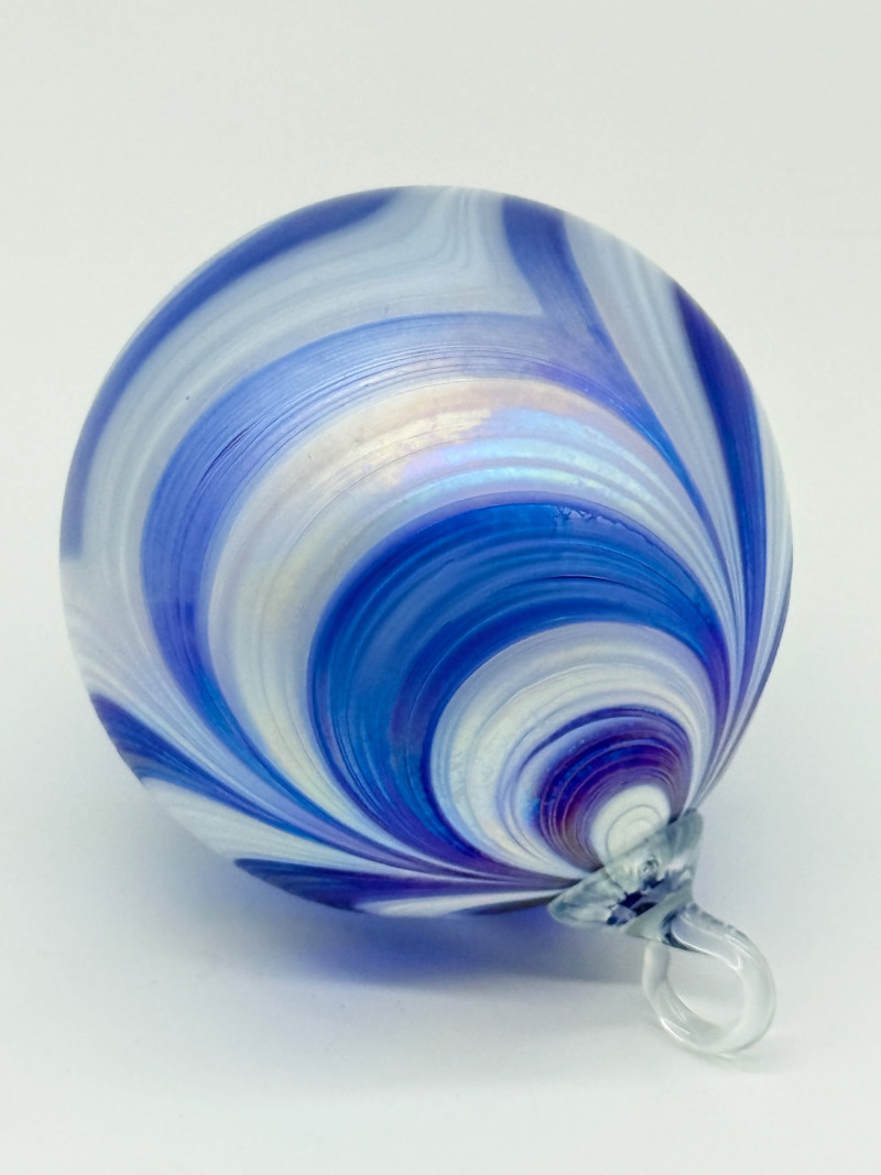 Lot # 66 - Handblown Glass Blue & White Swirl Ornament