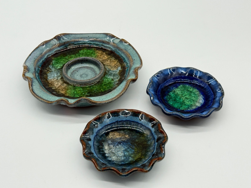 Artist Handmade Studio Crackle Glass Pottery Pieces