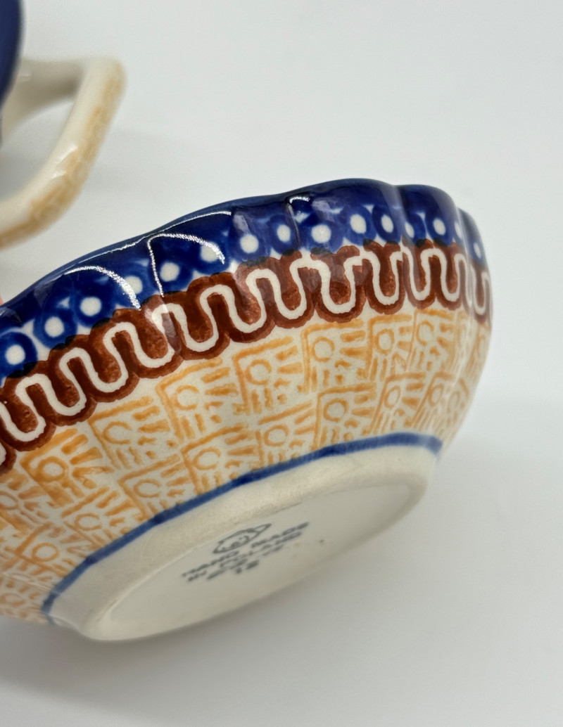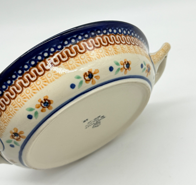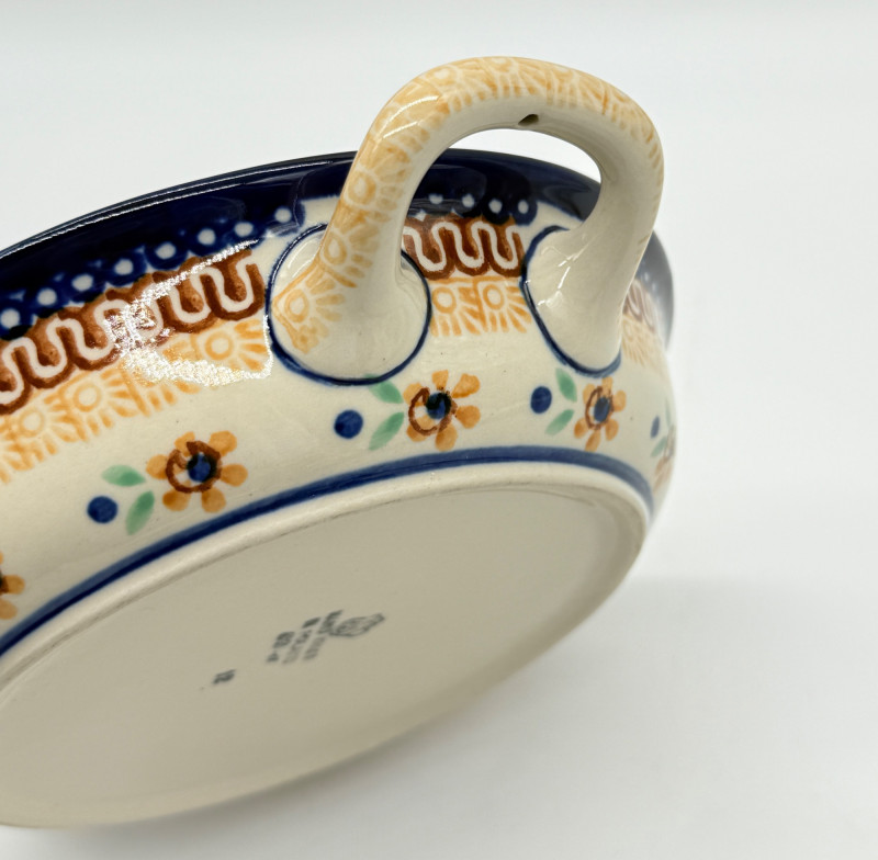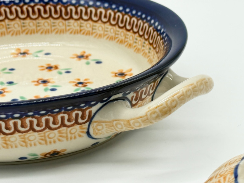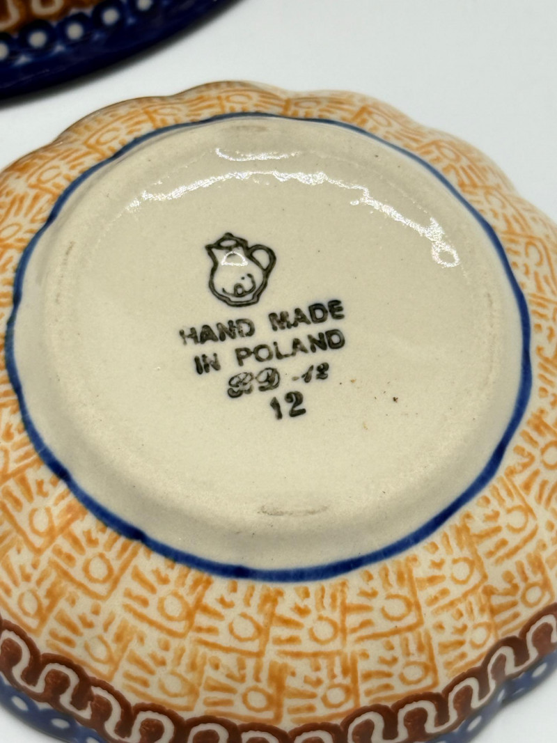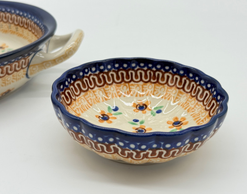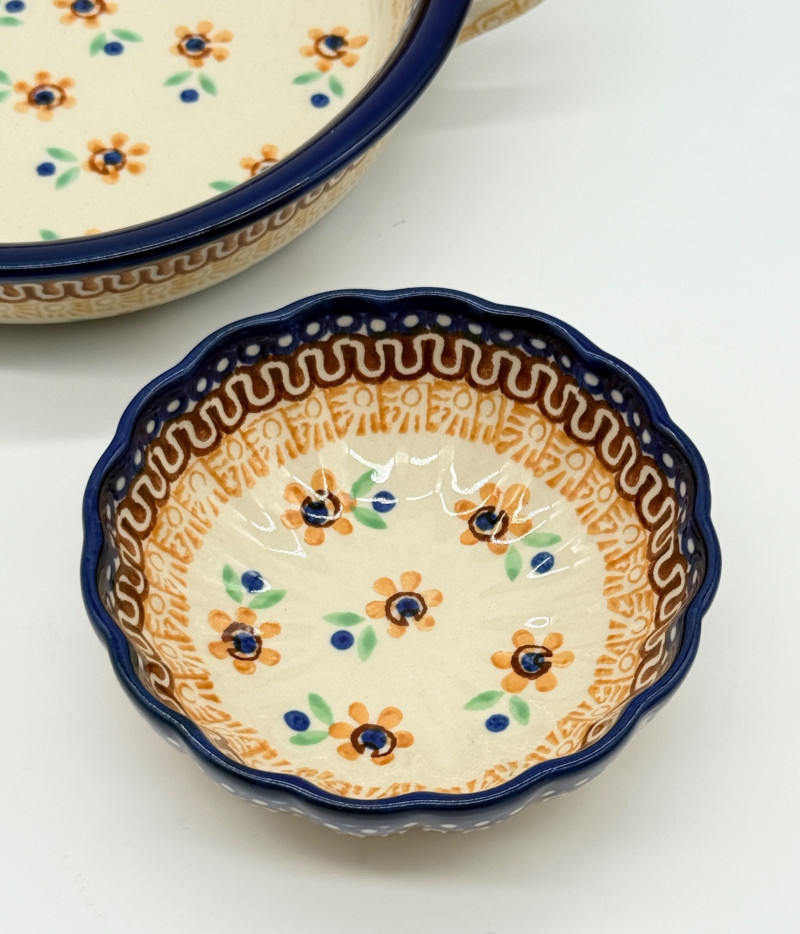Polish Pottery Round Baker w/ Handles + Small Scalloped Bowl