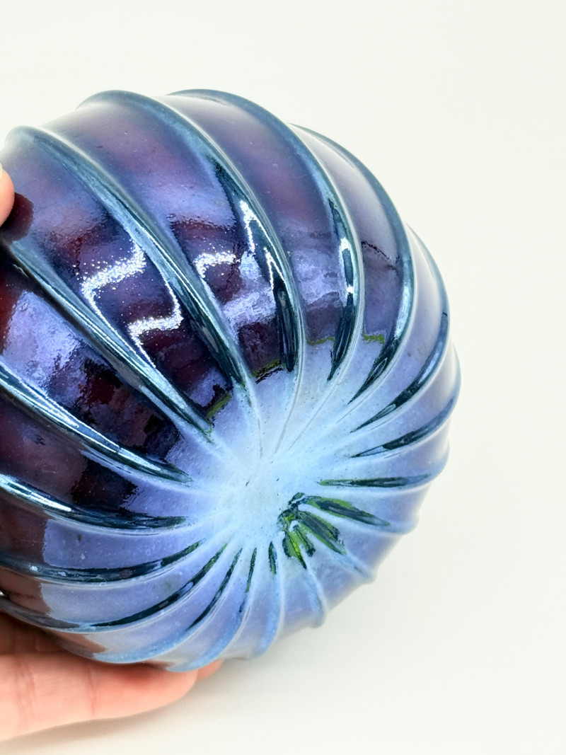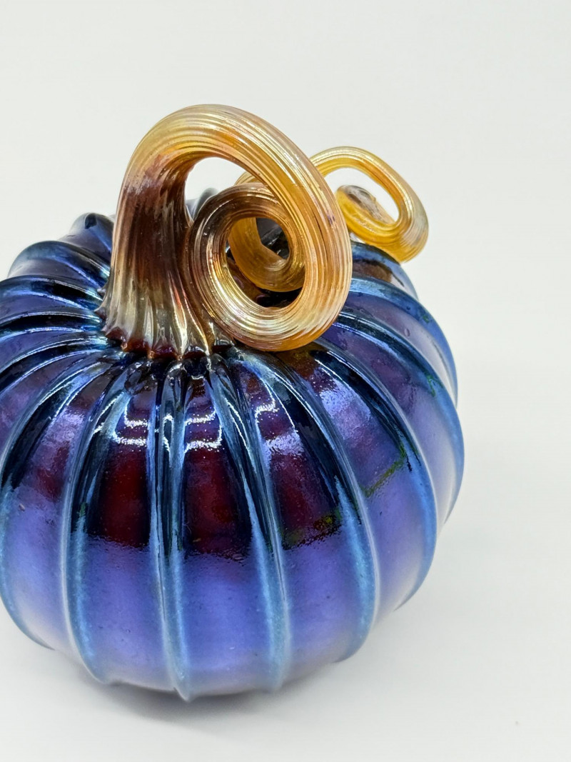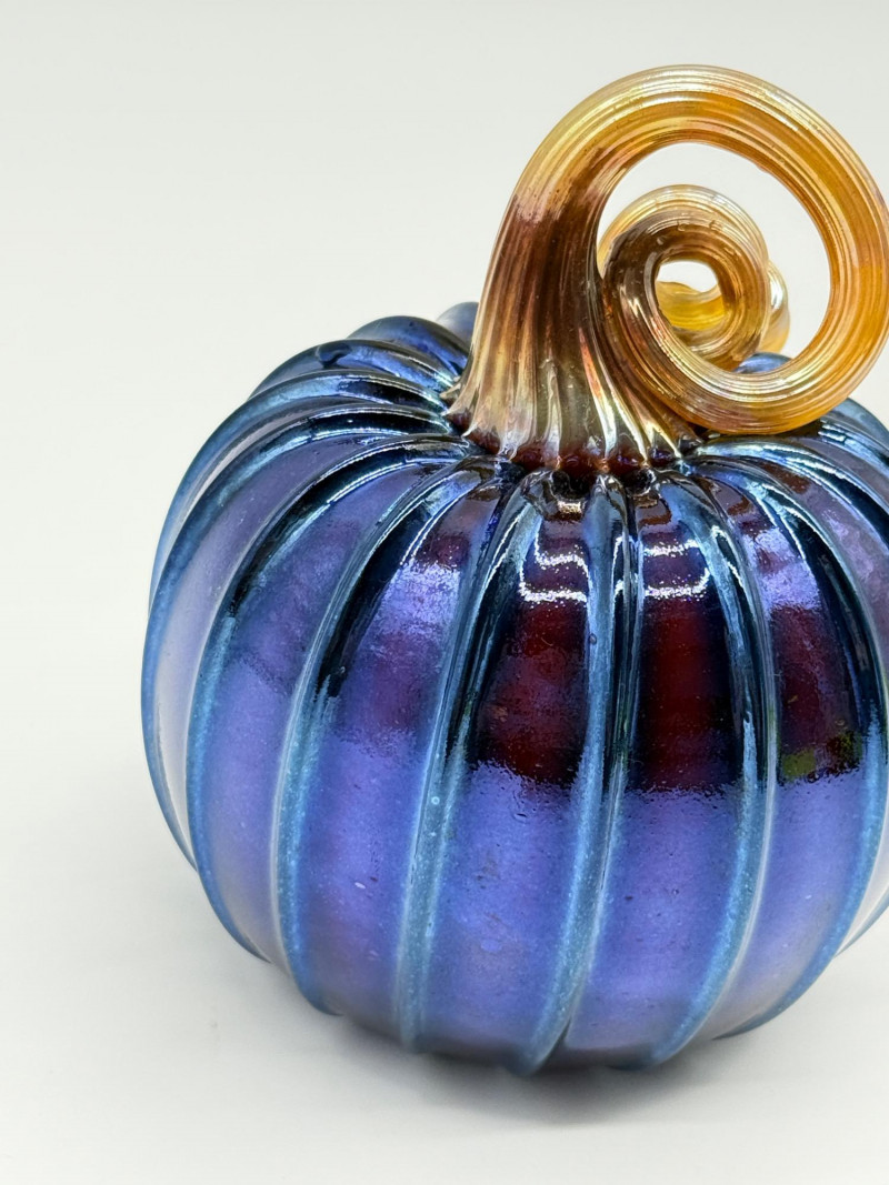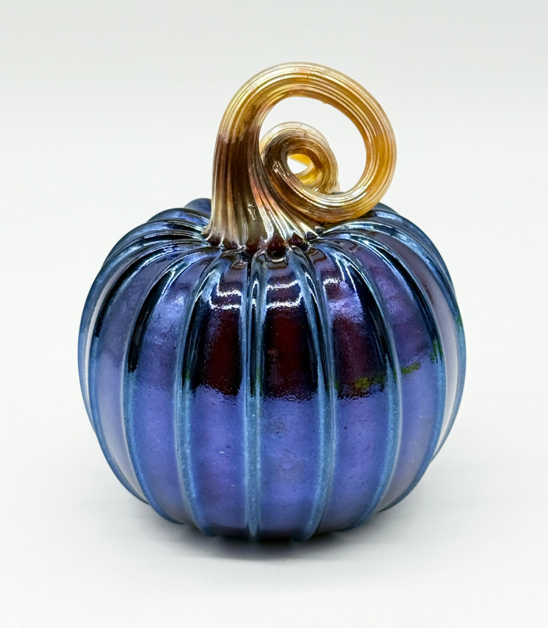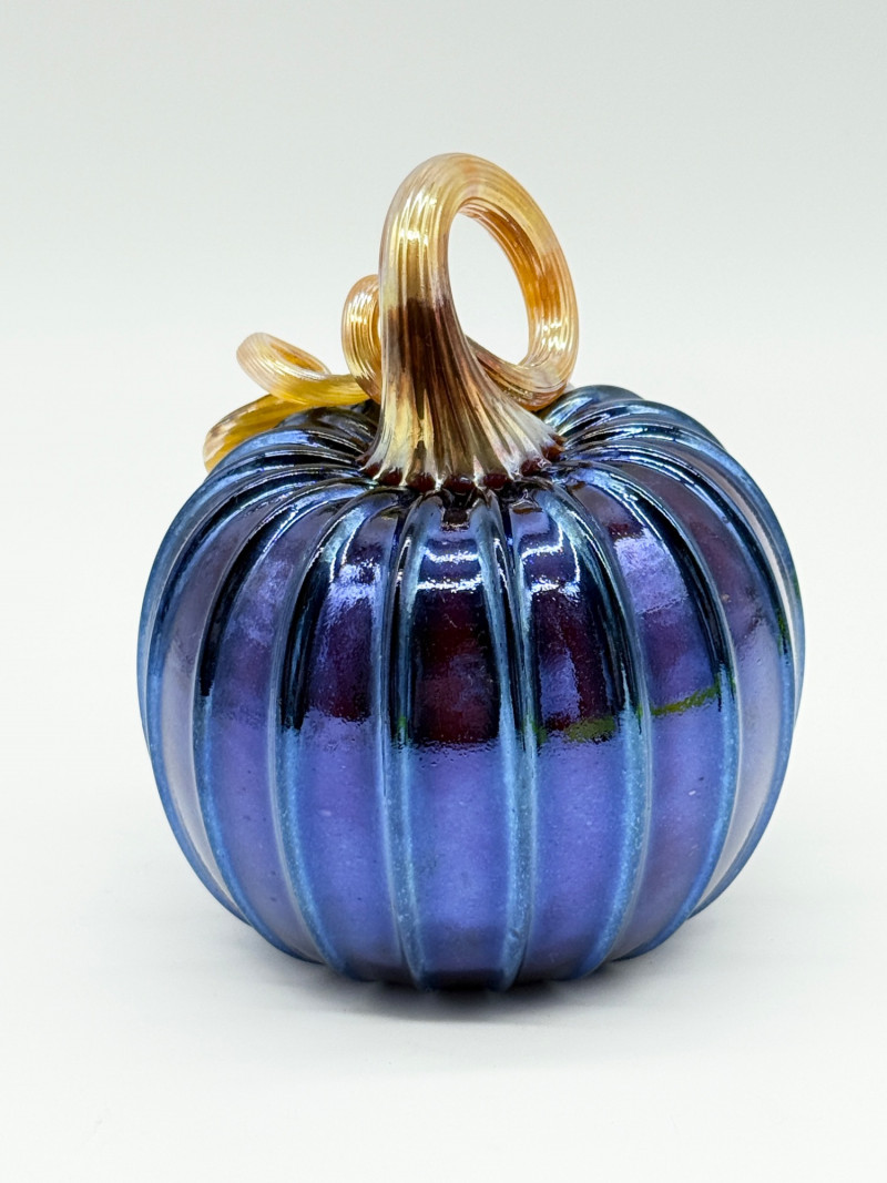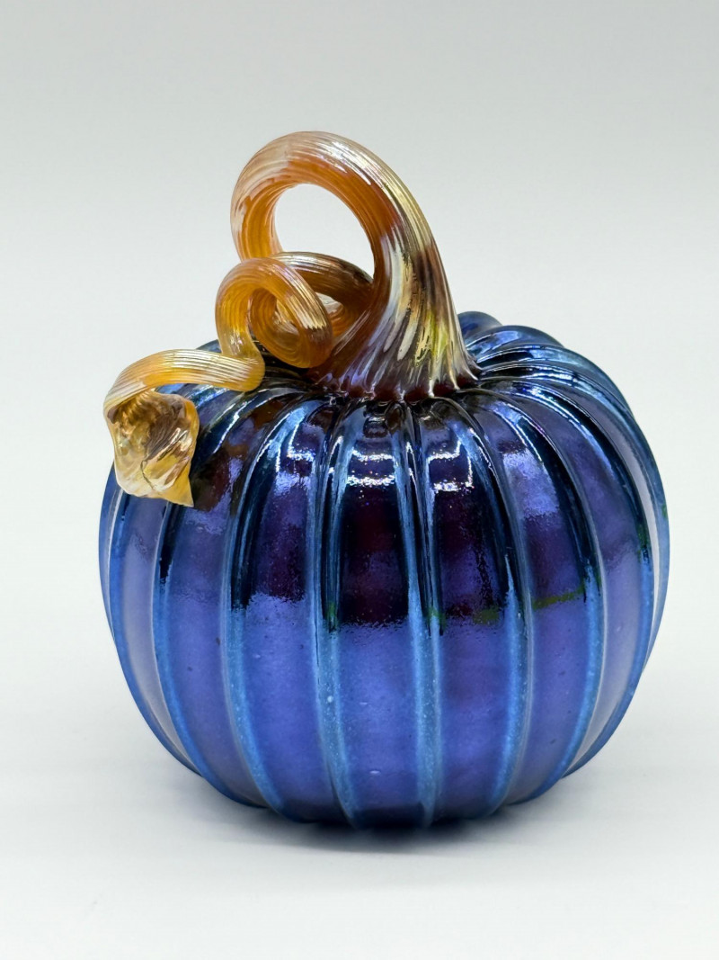 Handblown Blue Glass Pumpkin