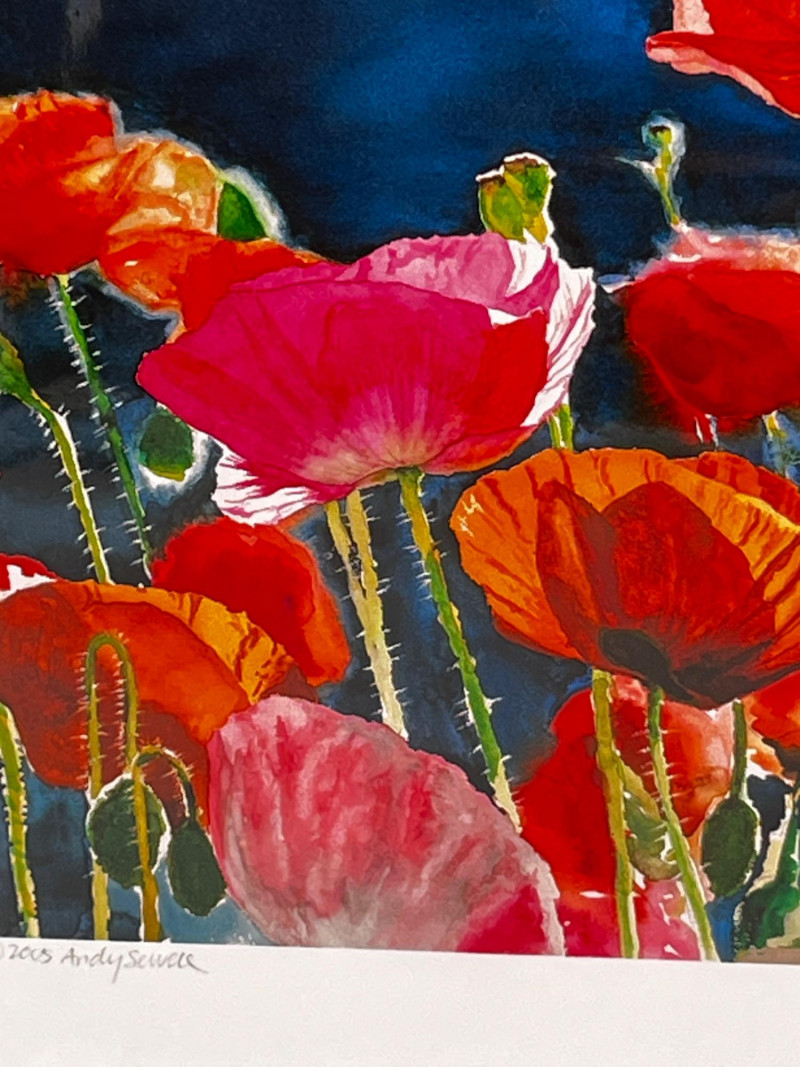 Andy Swell - "Poppy Morning" Watercolor Print, Signed by Artist