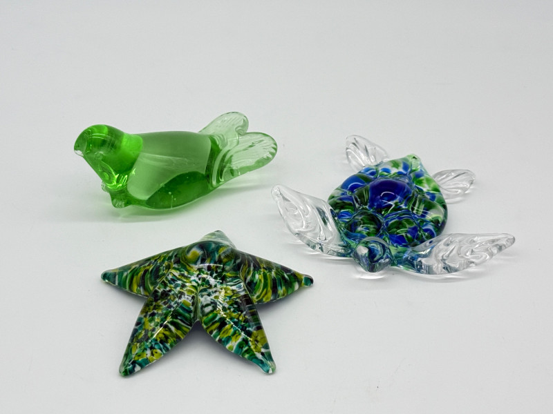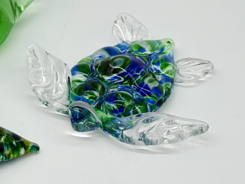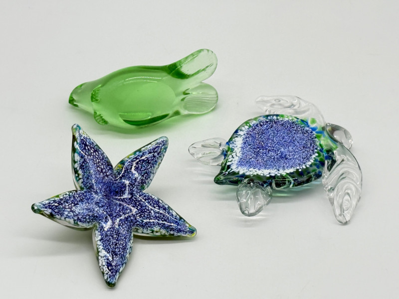 Lot # 35 - Handblown Sculpted Glass Sea Turtle, Seal + Starfish Figurines