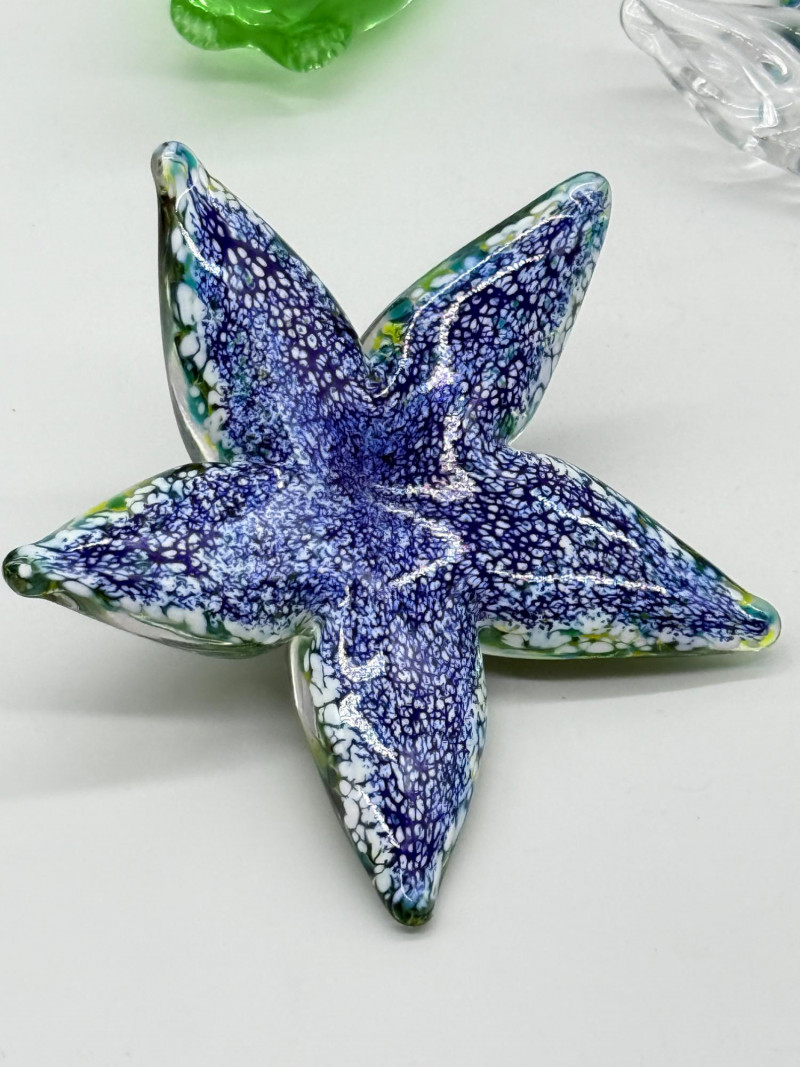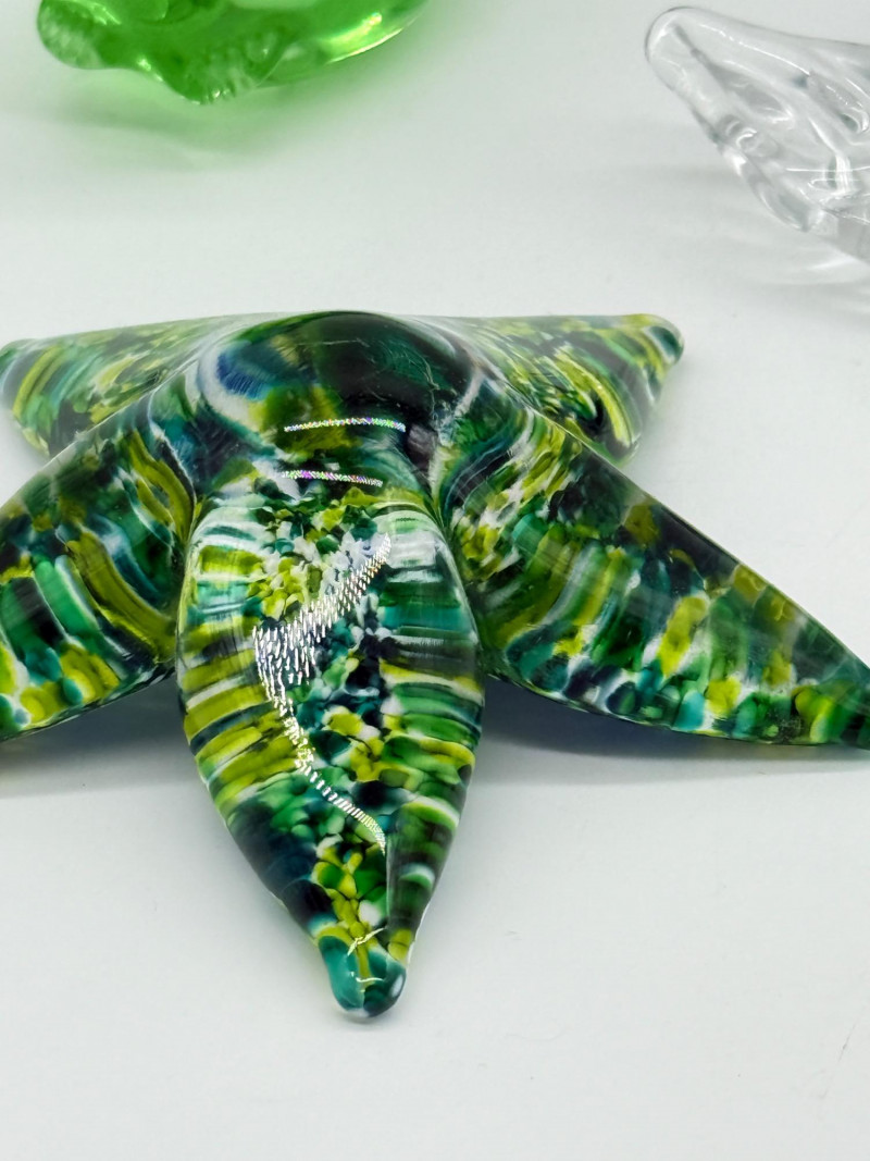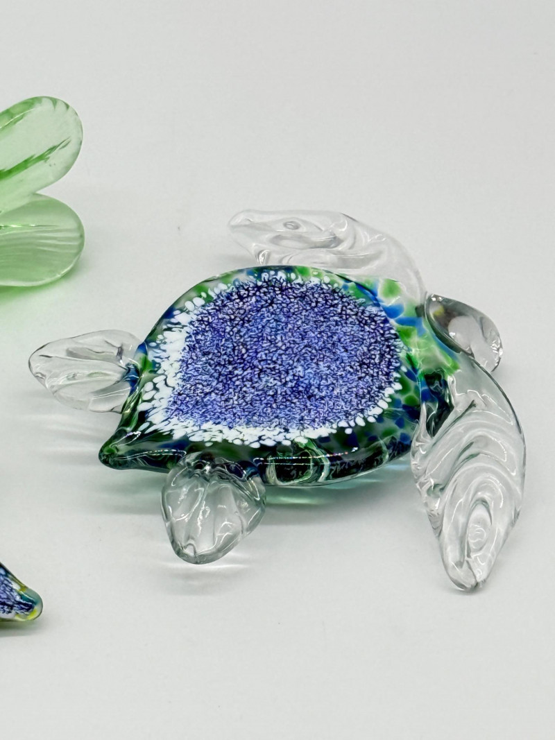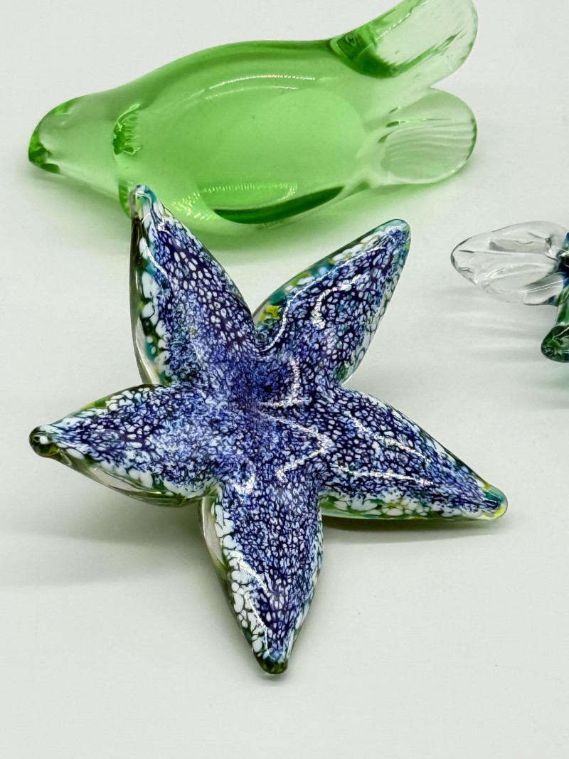 Handblown Sculpted Glass Sea Turtle, Seal + Starfish Figurines