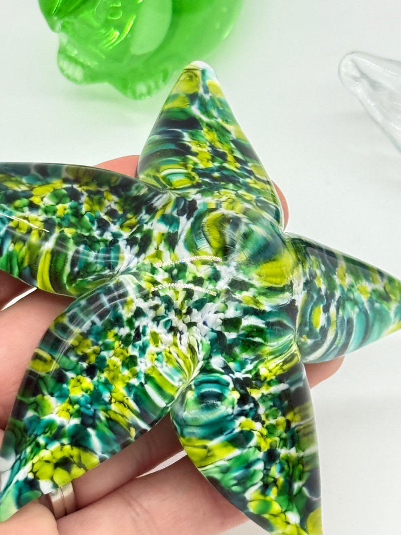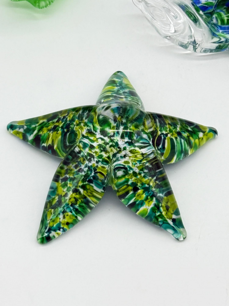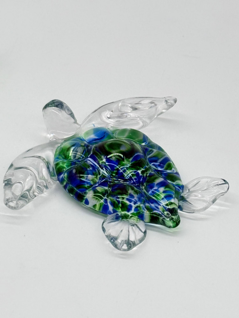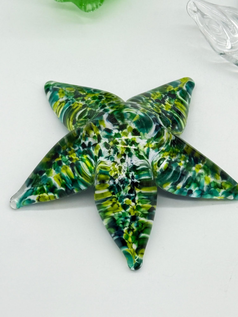 Handblown Sculpted Glass Sea Turtle, Seal + Starfish Figurines