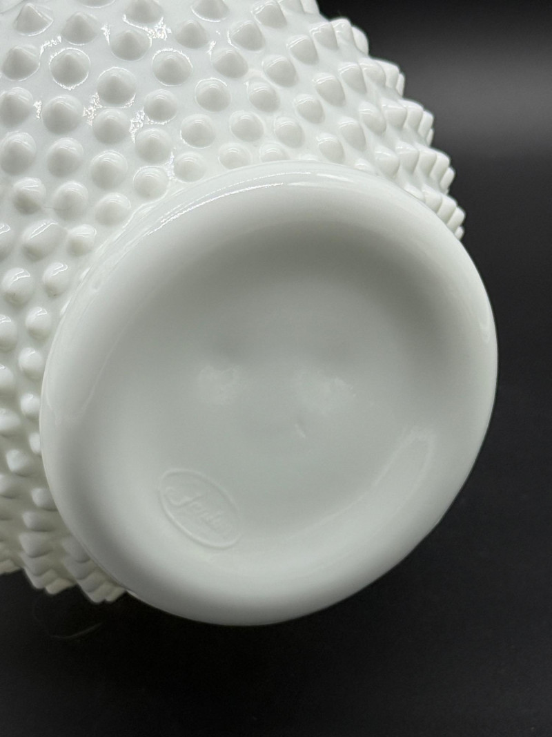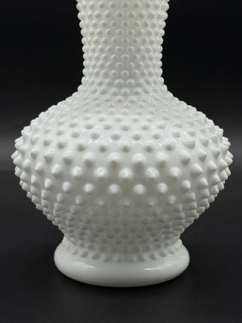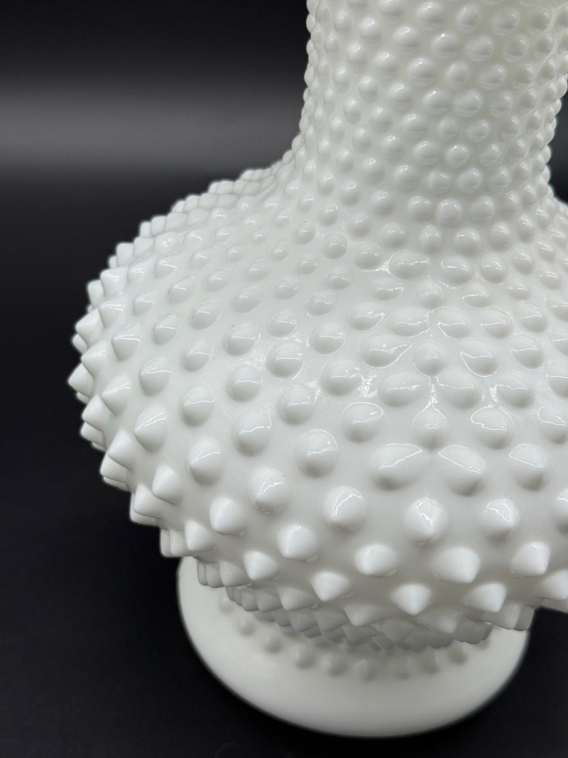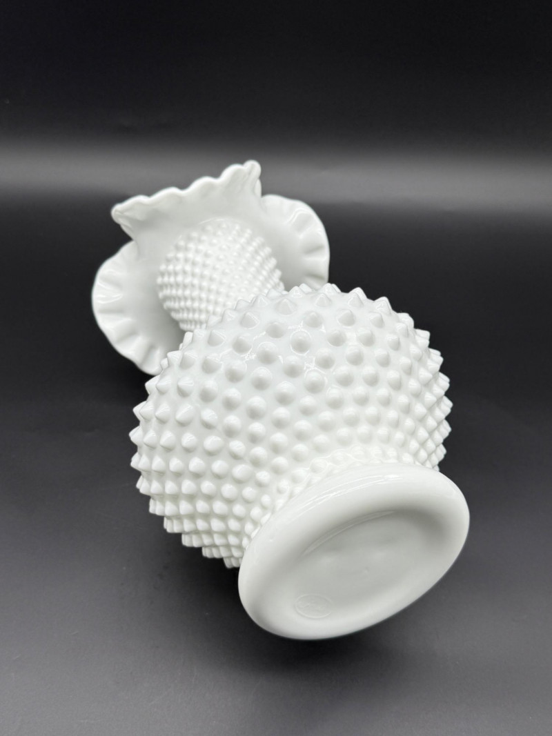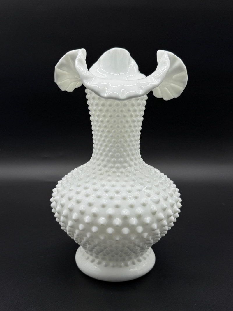 Vintage Fenton White Mile Glass Hobnail Ruffled Vase