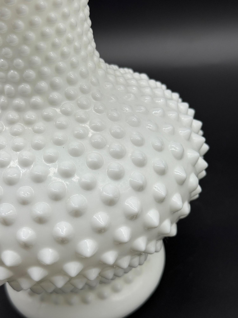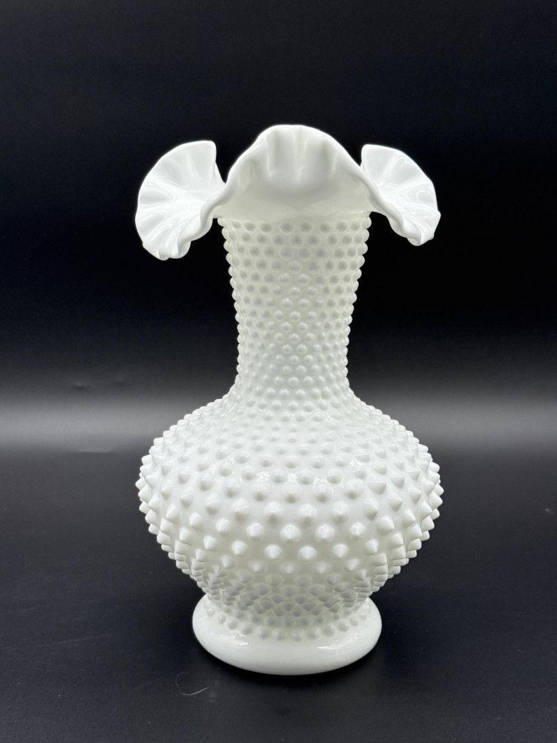 Lot # 42 - Vintage Fenton White Mile Glass Hobnail Ruffled Vase