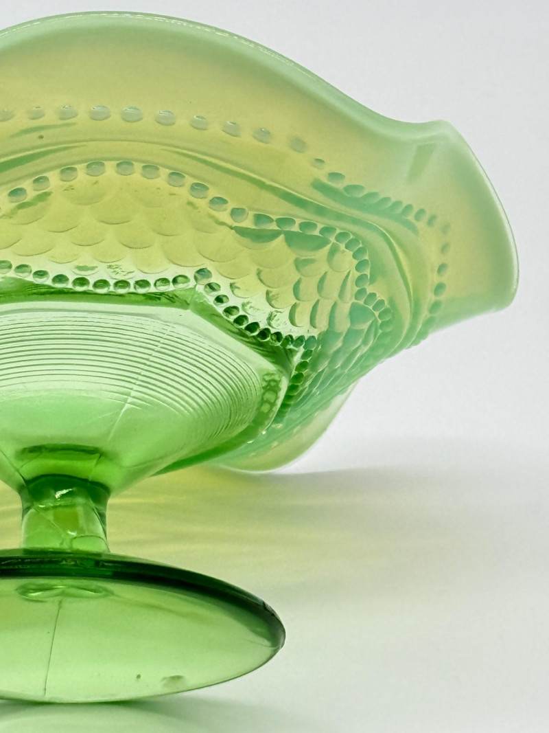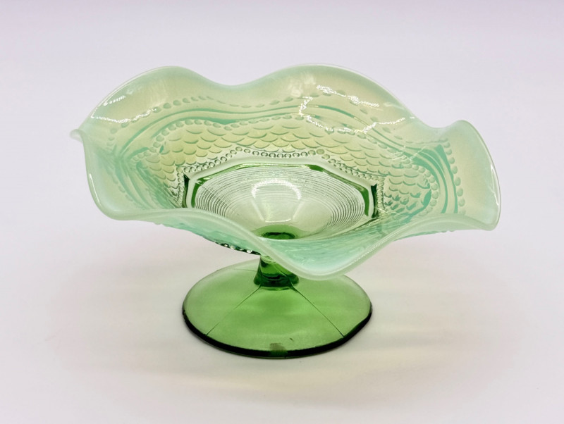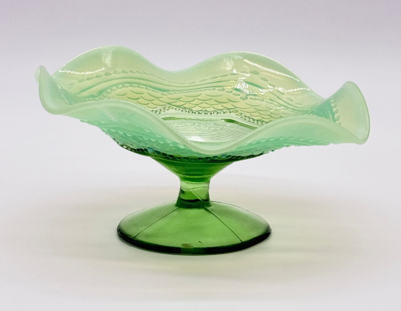 Jefferson Glass Green Opalescent Pearls & Scales Bowl