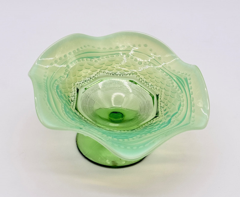Lot # 47 - Jefferson Glass Green Opalescent Pearls & Scales Bowl