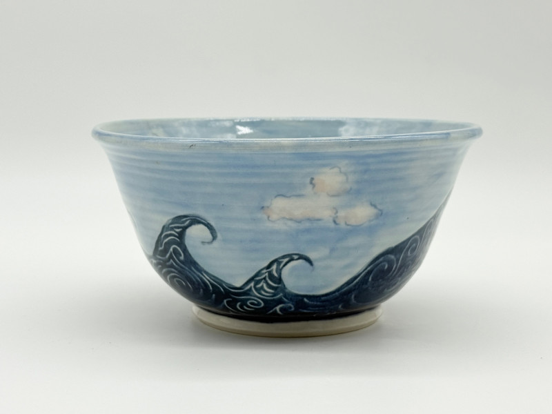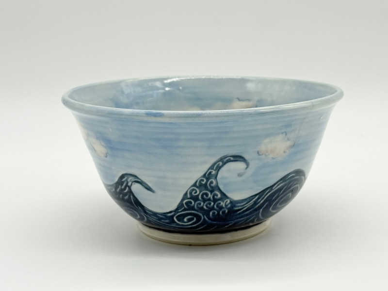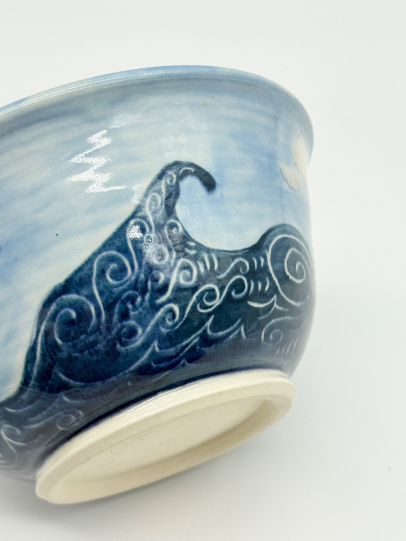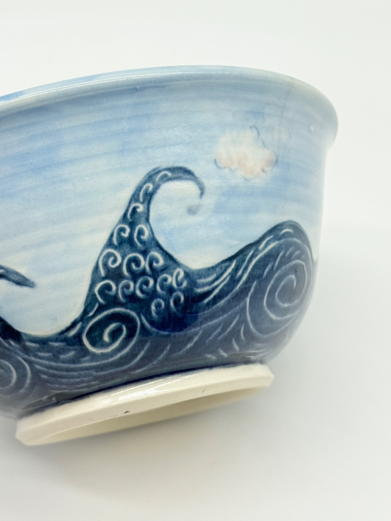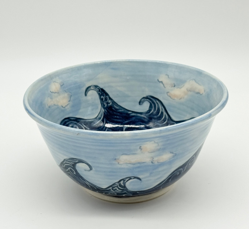 Wave & Cloud Porcelain Bowl, Signed by Artist