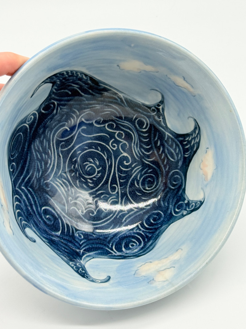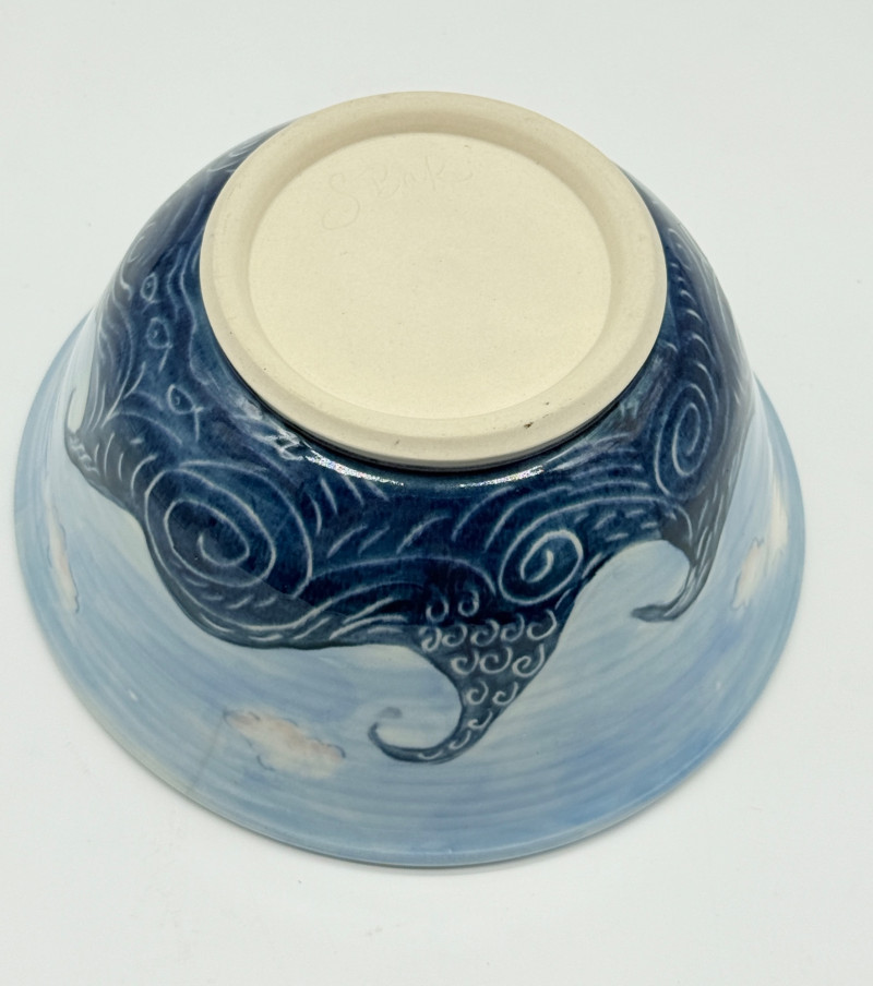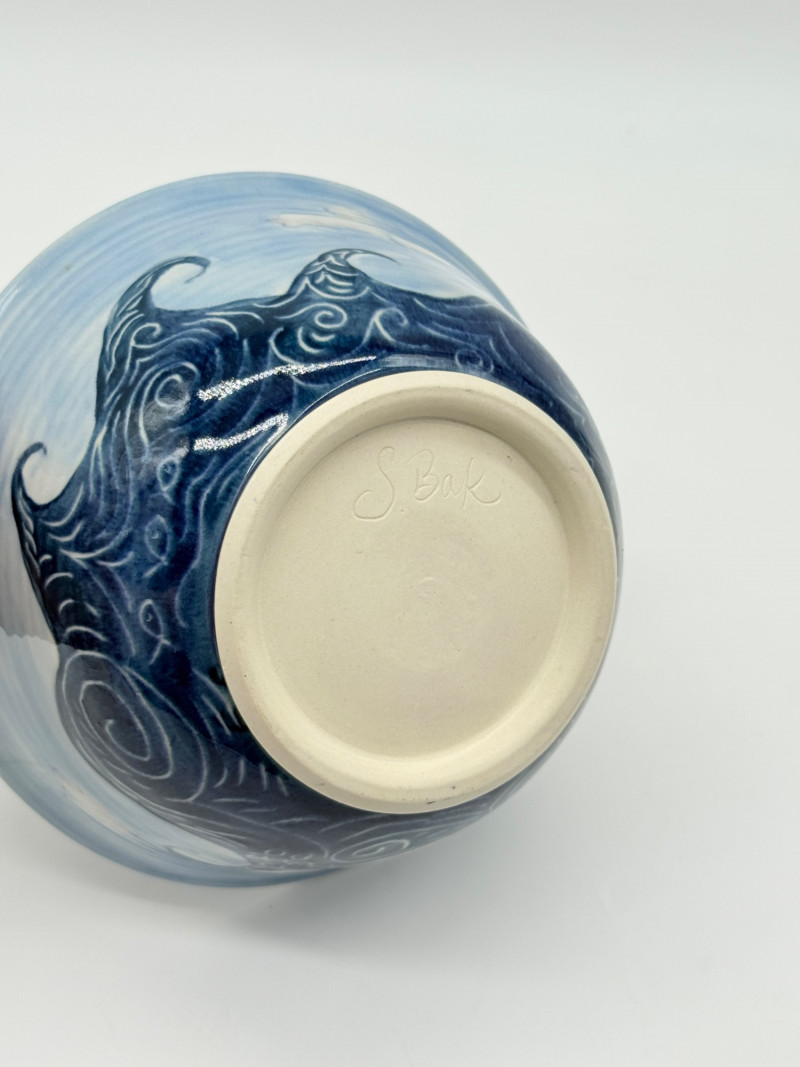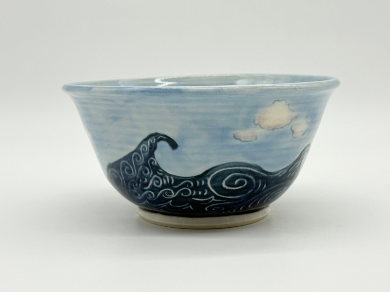 Wave & Cloud Porcelain Bowl, Signed by Artist
