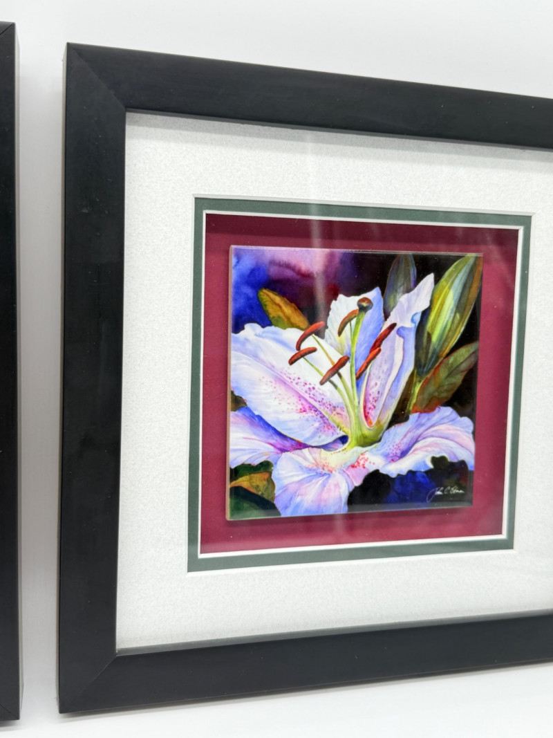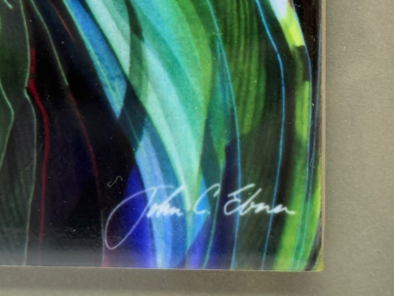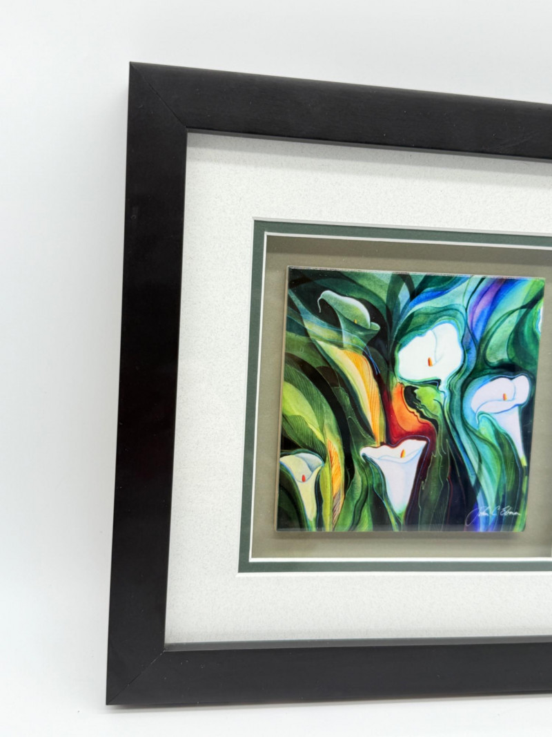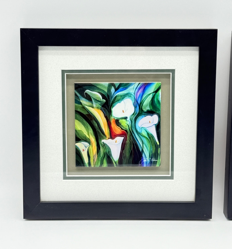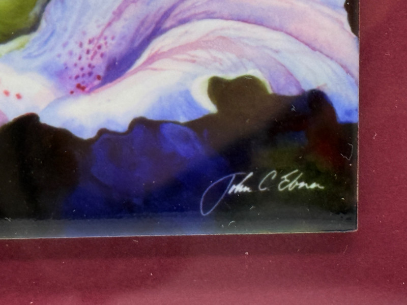 John C. Ebner - Framed Tropical Flowers on Ceramic Tile, Signed