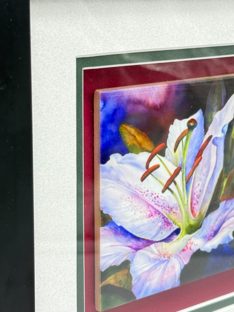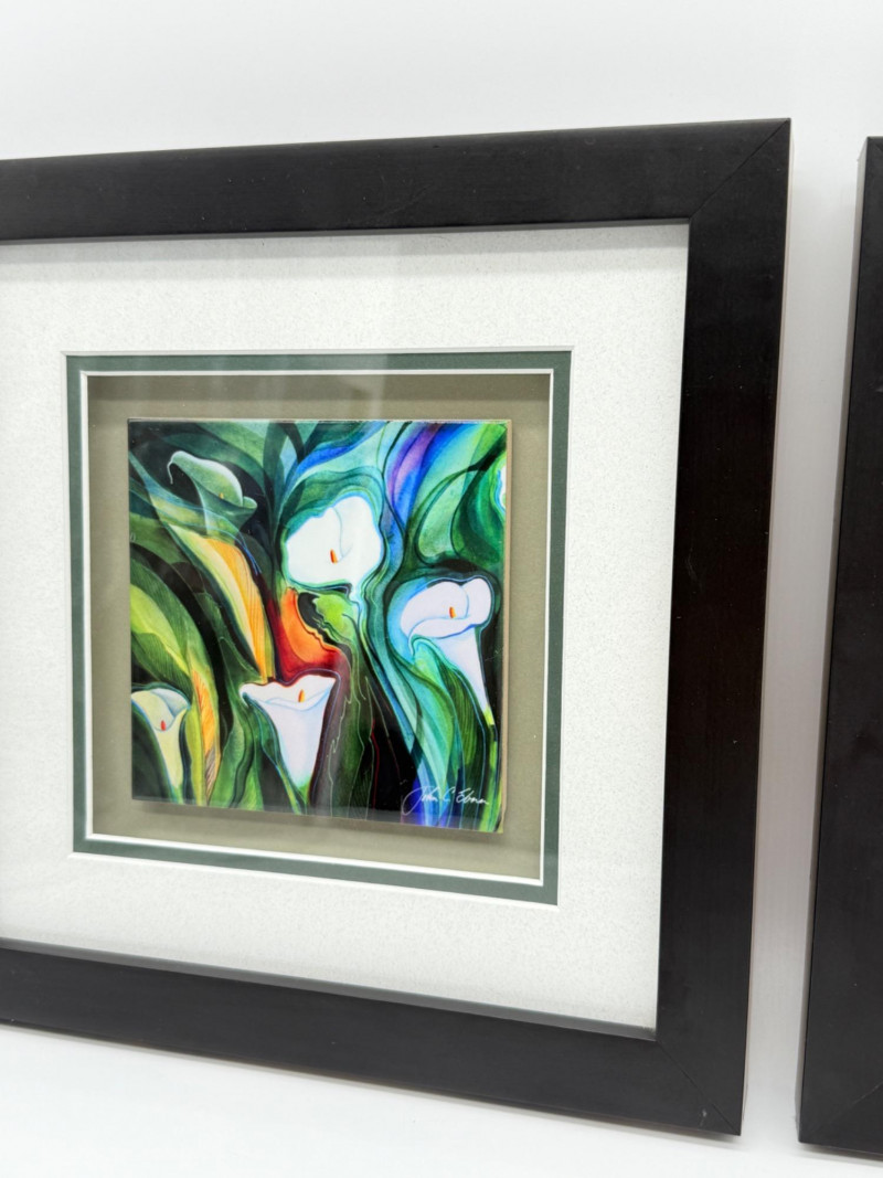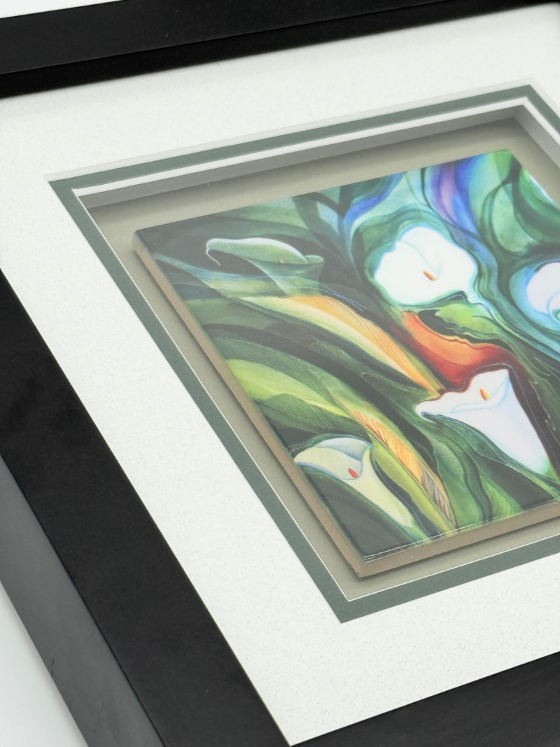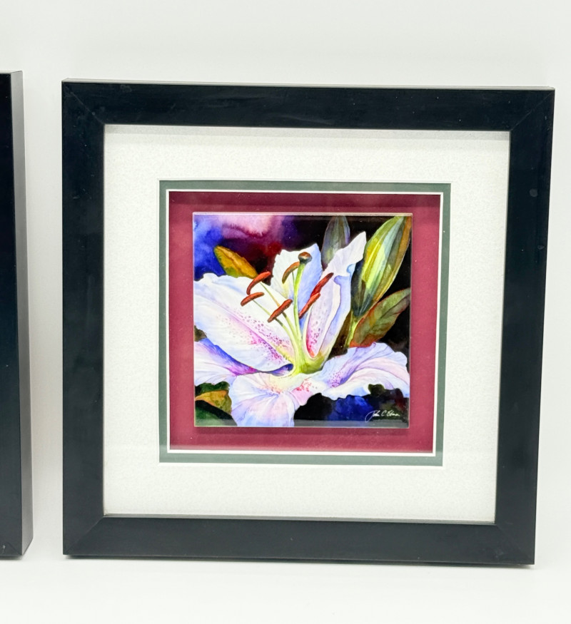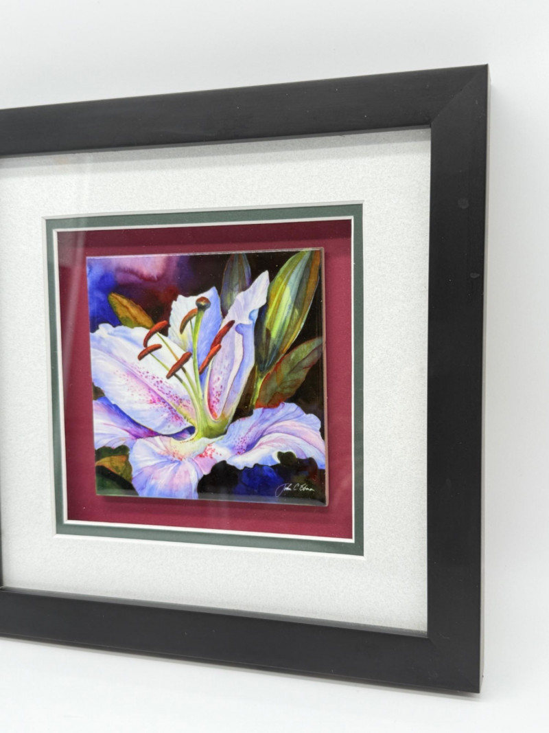 John C. Ebner - Framed Tropical Flowers on Ceramic Tile, Signed