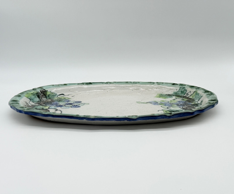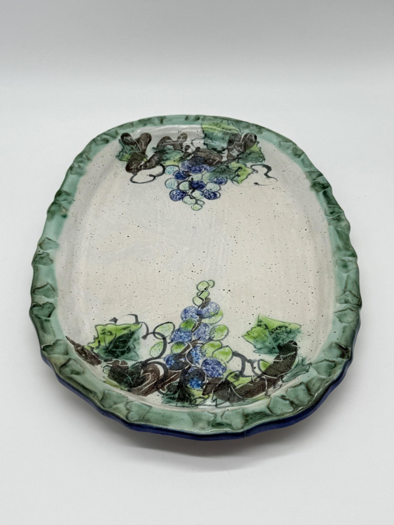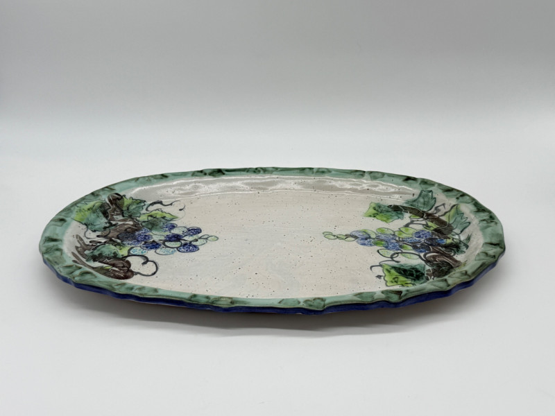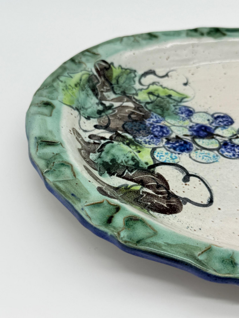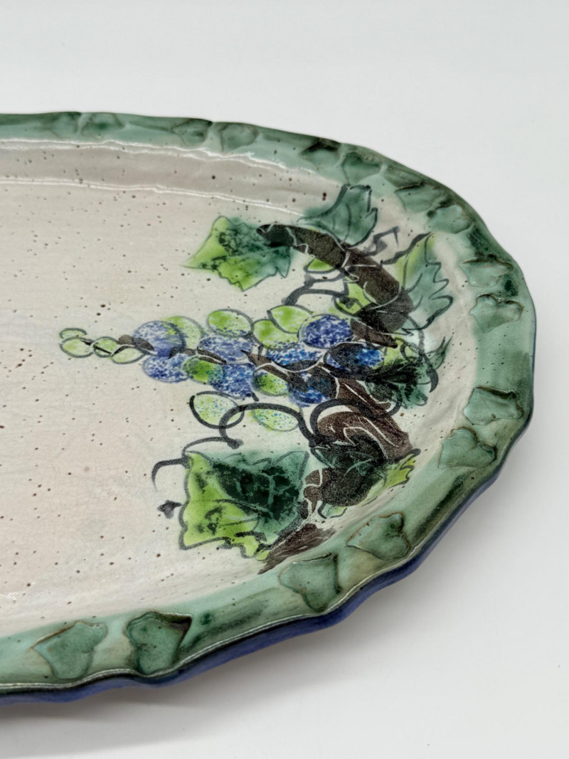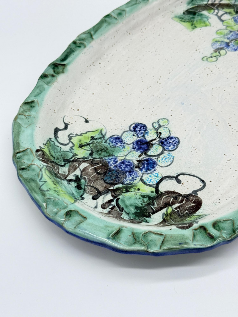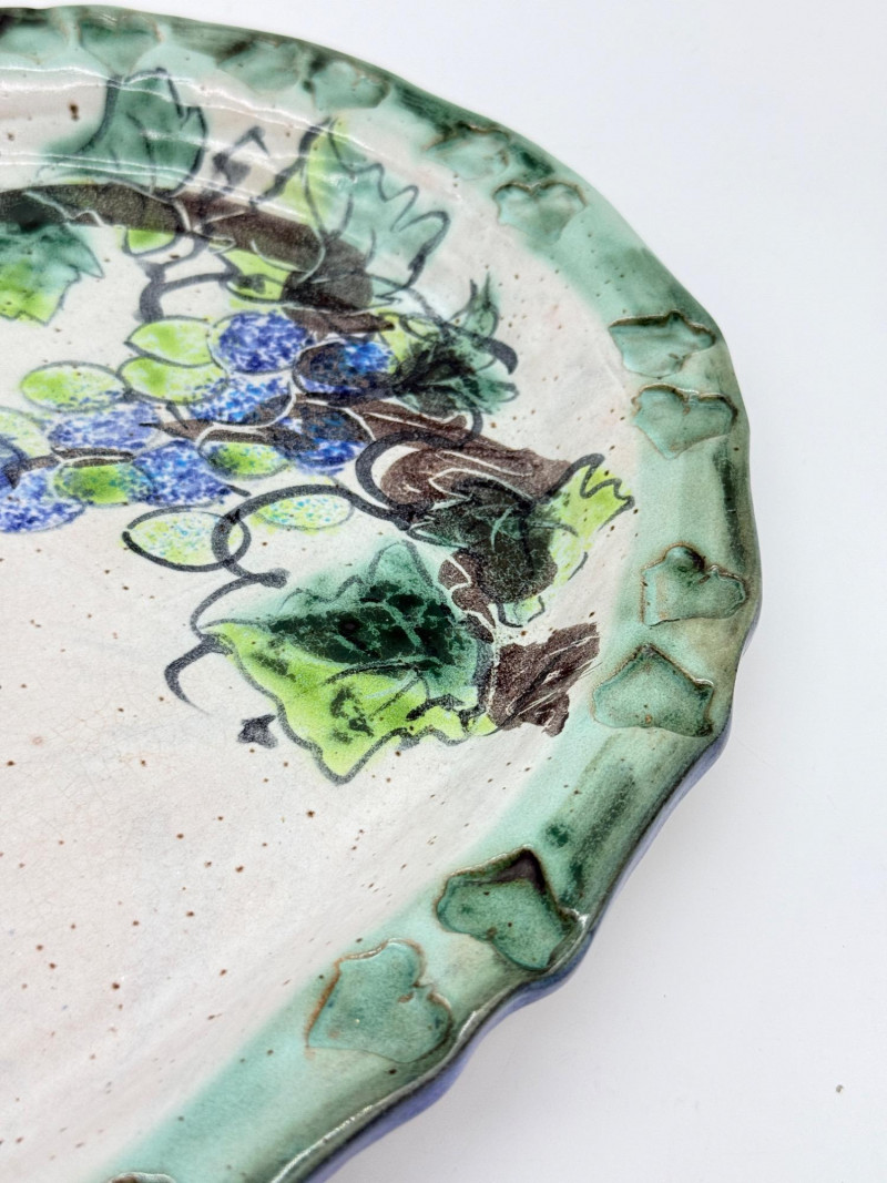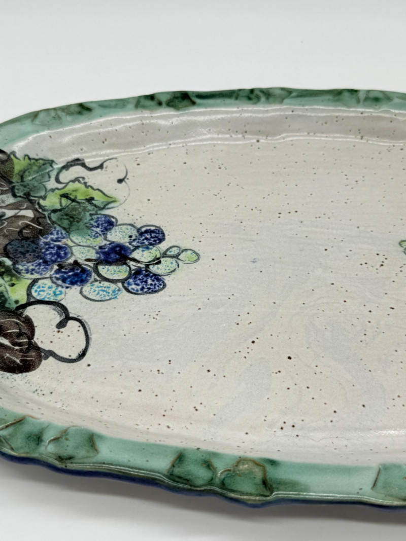 Glazed Pottery Grapes & Vines Serving Tray, Signed