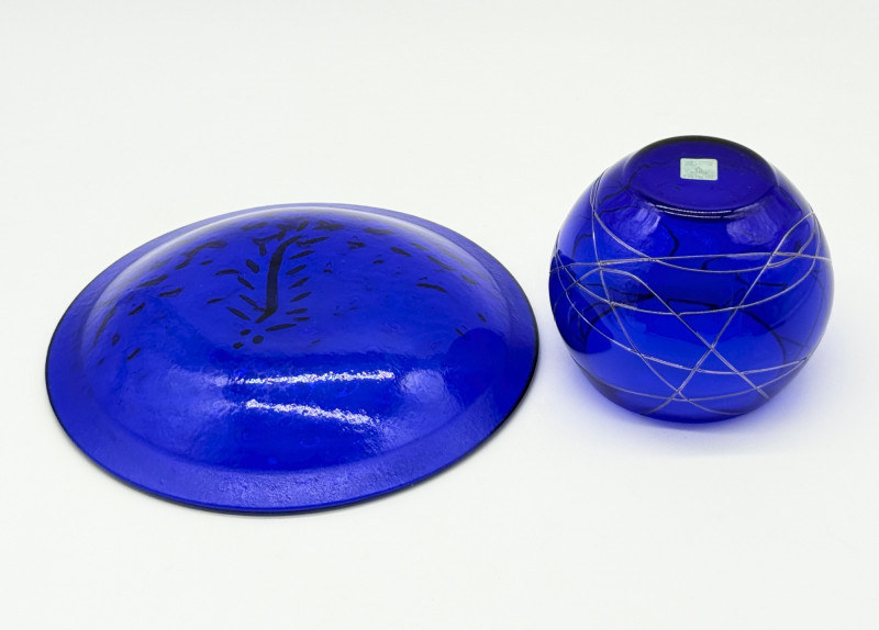 Lot # 103 - Cobalt Blue Gold Embedded Glass Bowl + PartyLite Calypso Glass Vase