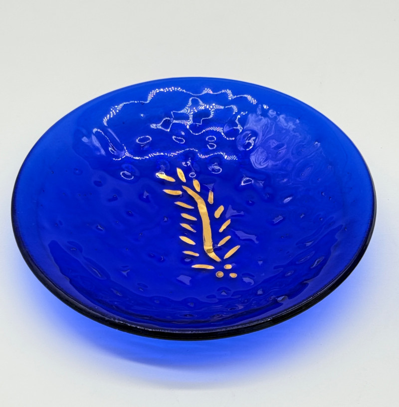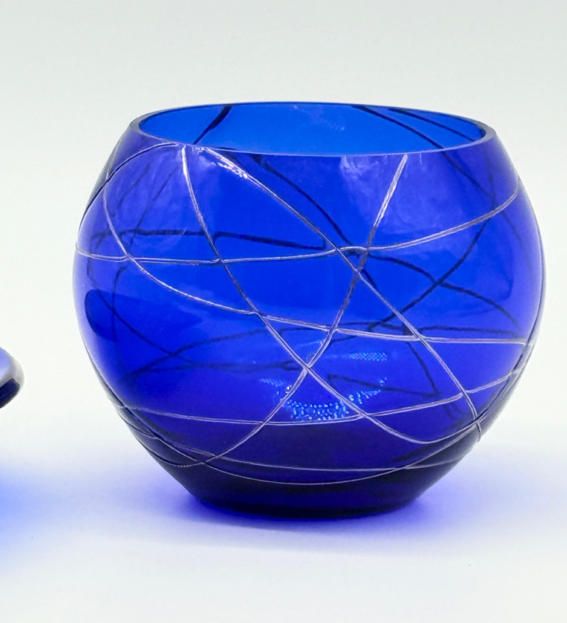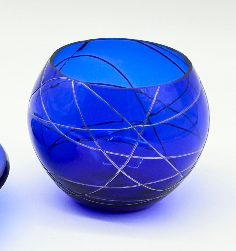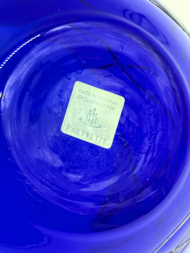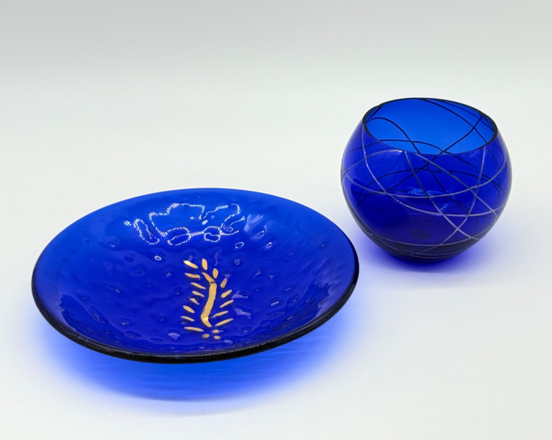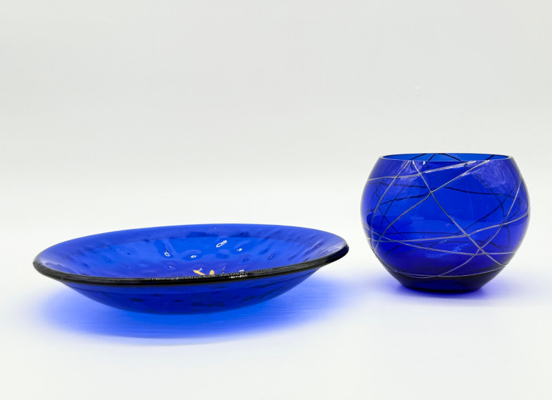 Cobalt Blue Gold Embedded Glass Bowl + PartyLite Calypso Glass Vase