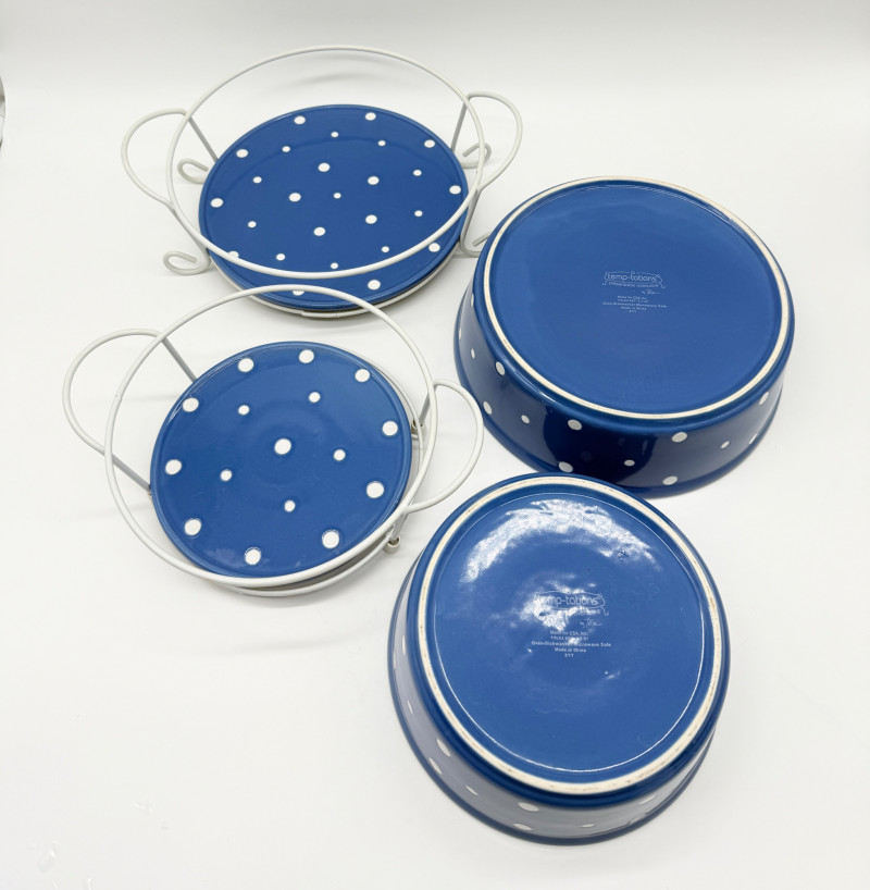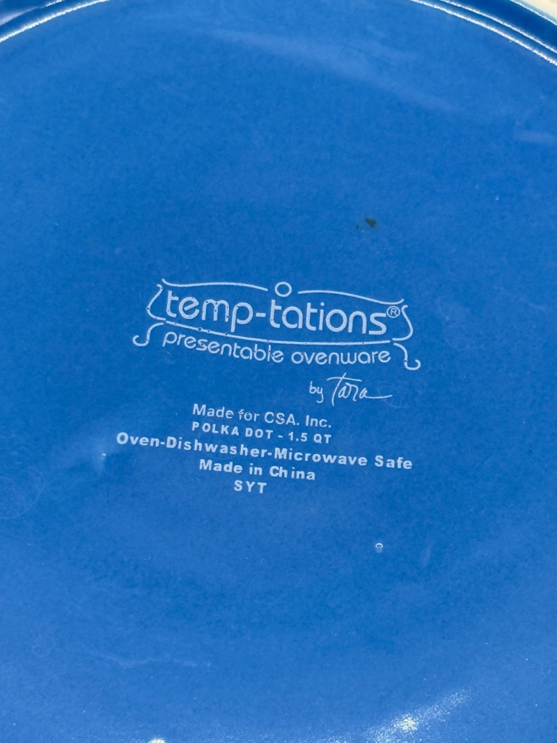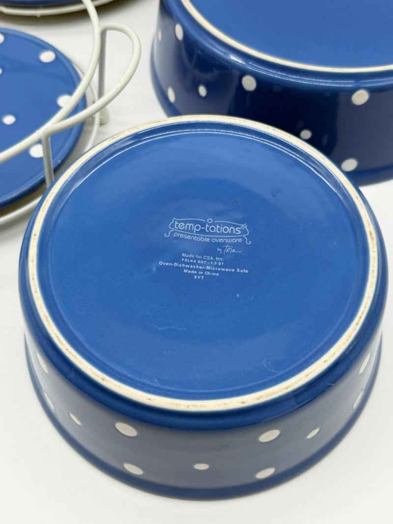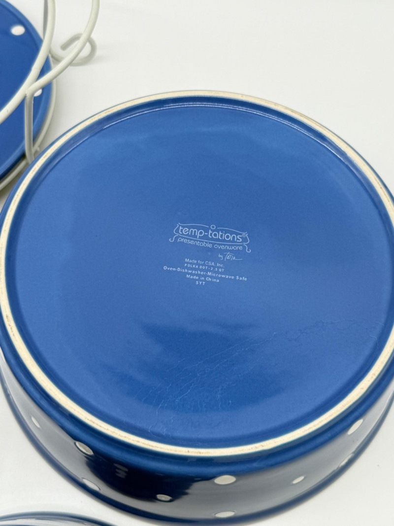 Temp-tations Blue Polka Dot Ovenware (1) 1.5qt, (1) 2.5qt w/ Baskets