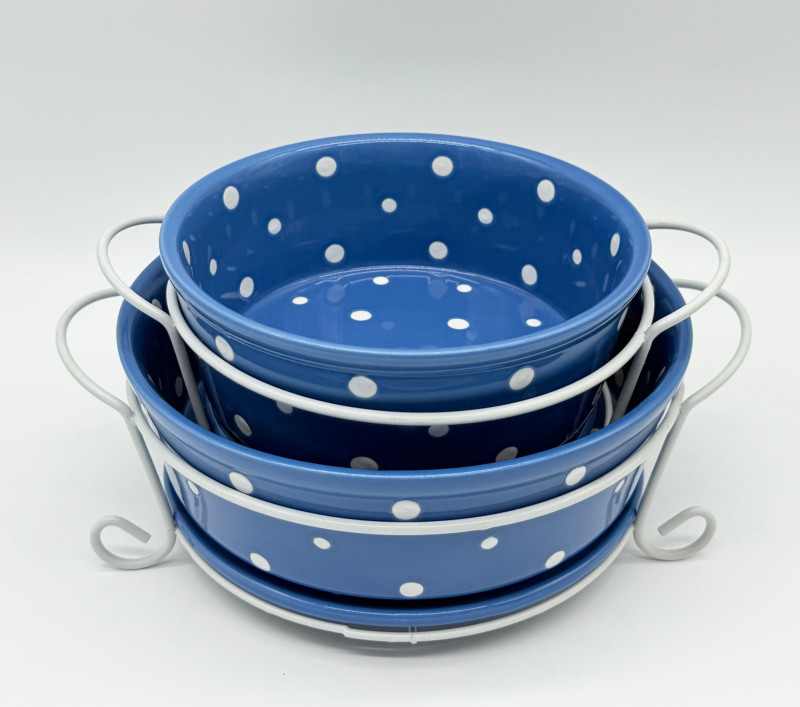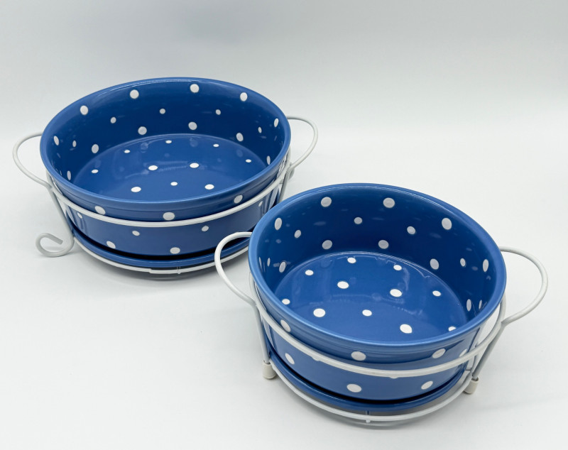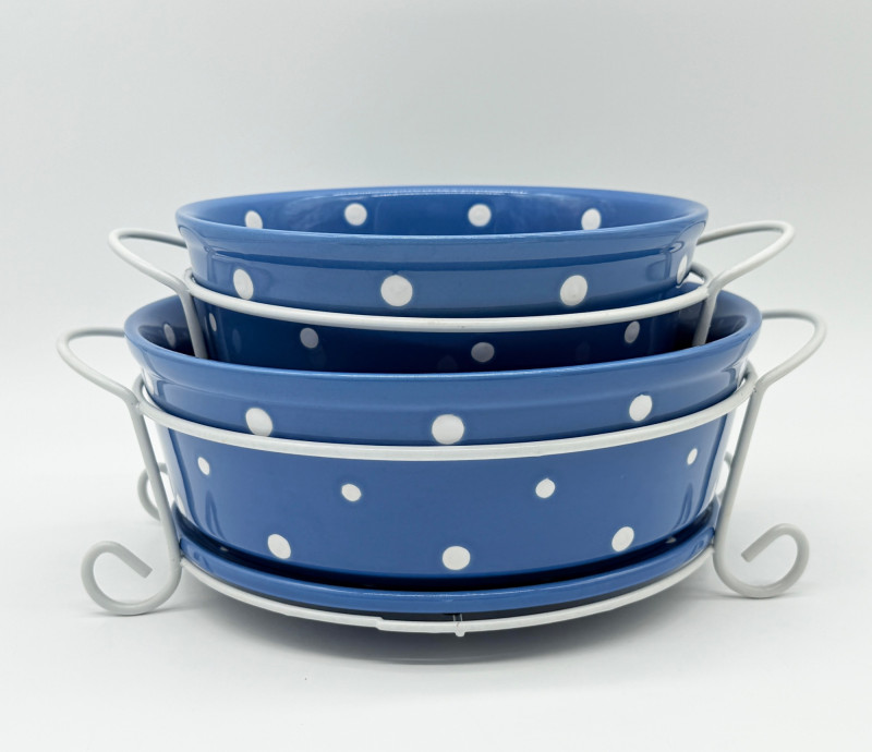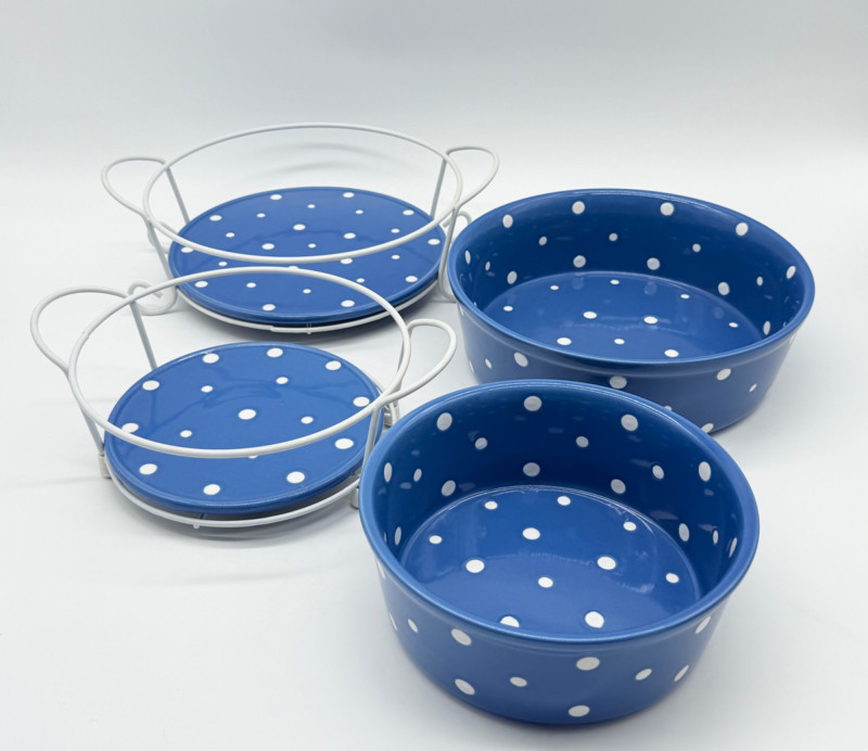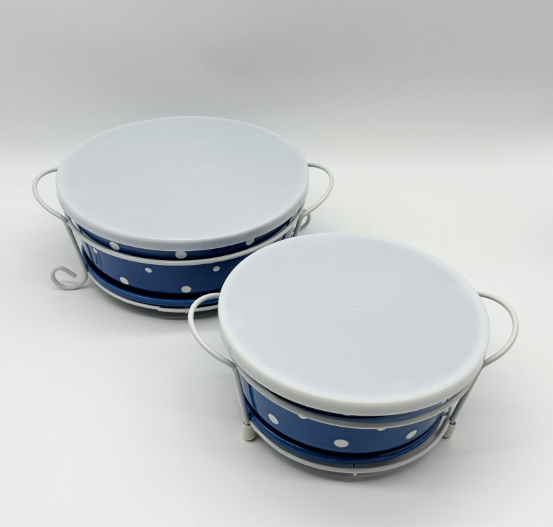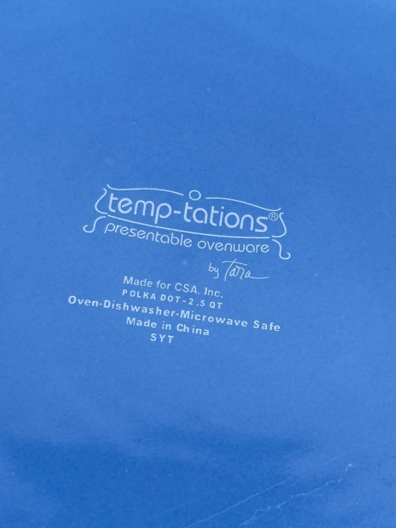 Temp-tations Blue Polka Dot Ovenware (1) 1.5qt, (1) 2.5qt w/ Baskets