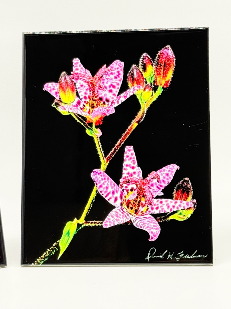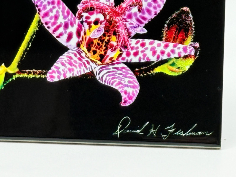 David H. Fishman - Fuchsia + Toad Lilly Photo on Ceramic Tile, Signed