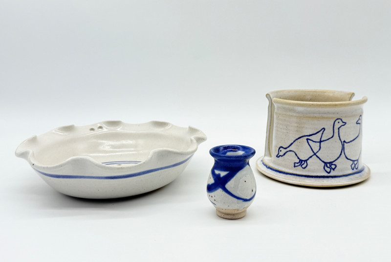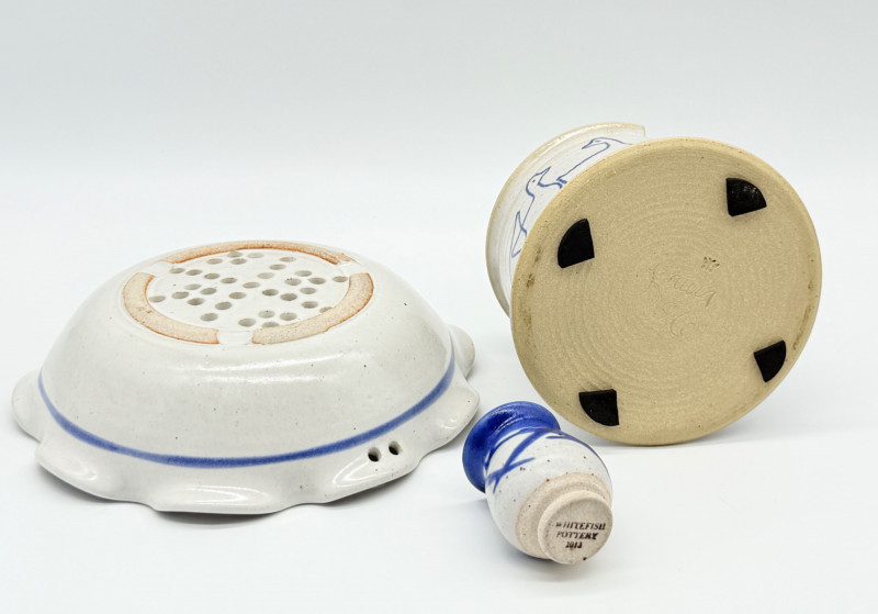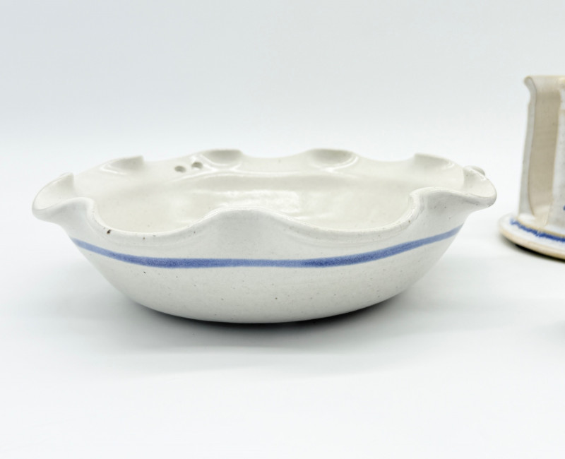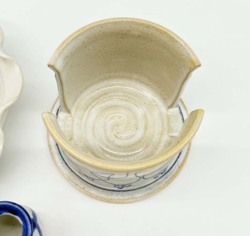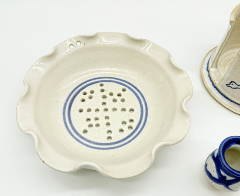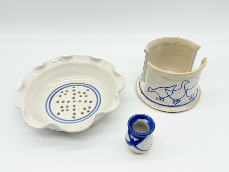 Lot # 96 - Pottery Strainer, Sponge Holder + Miniature Vase