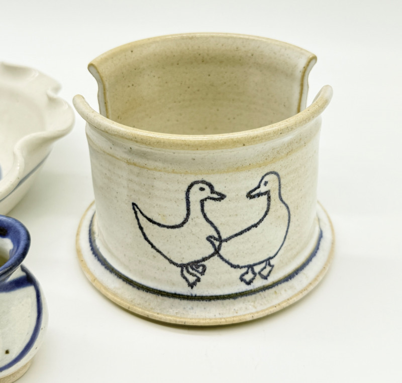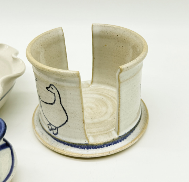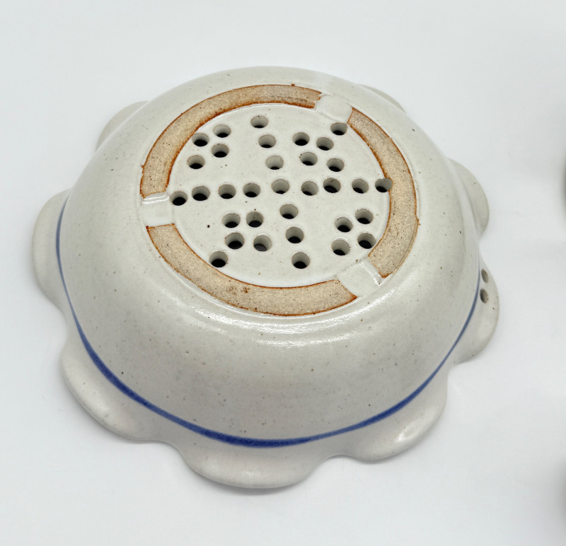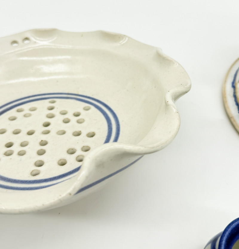 Pottery Strainer, Sponge Holder + Miniature Vase
