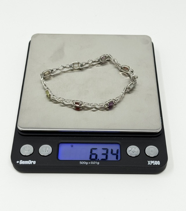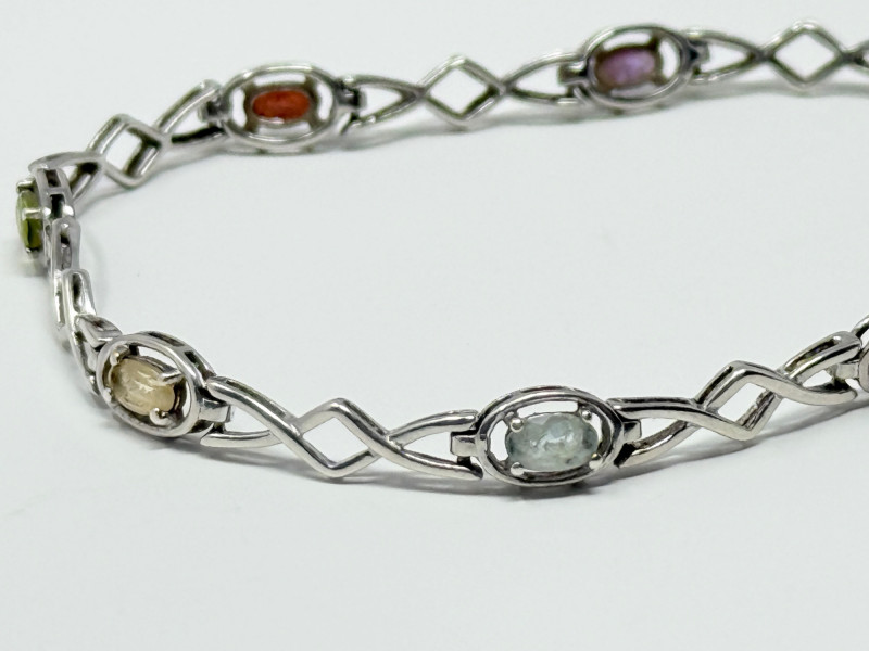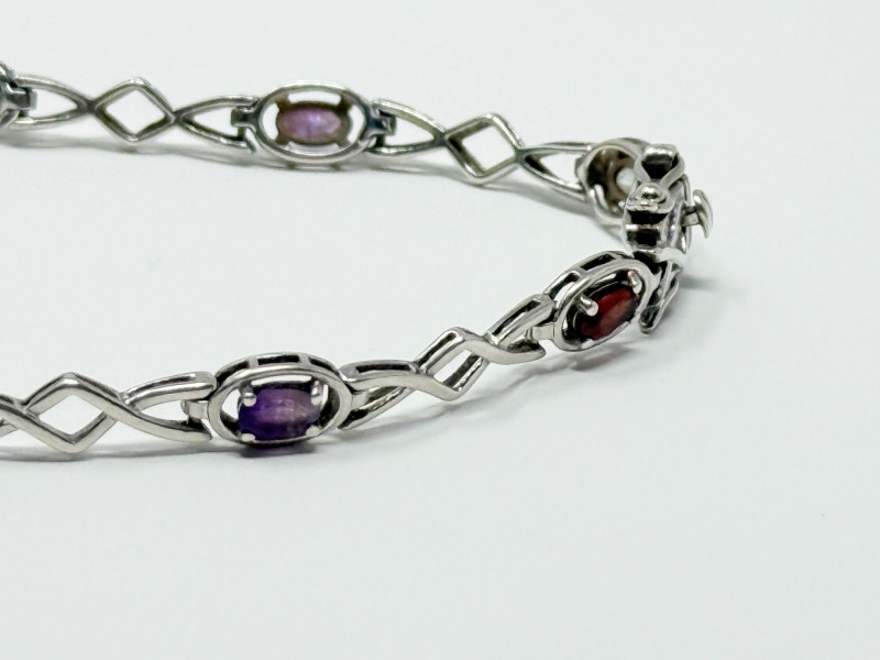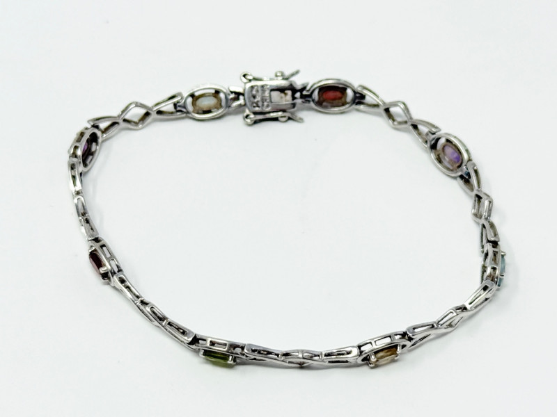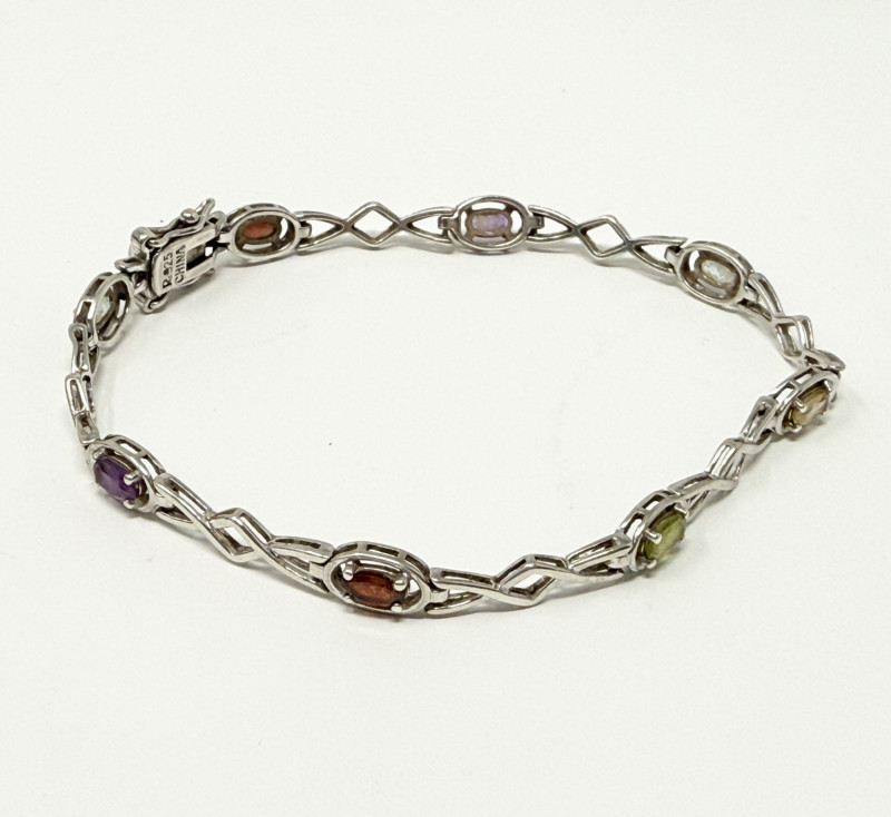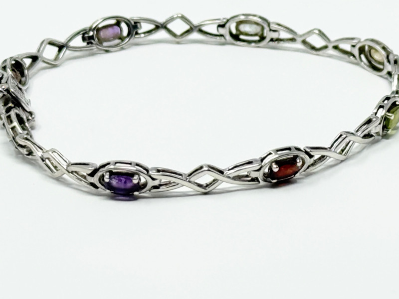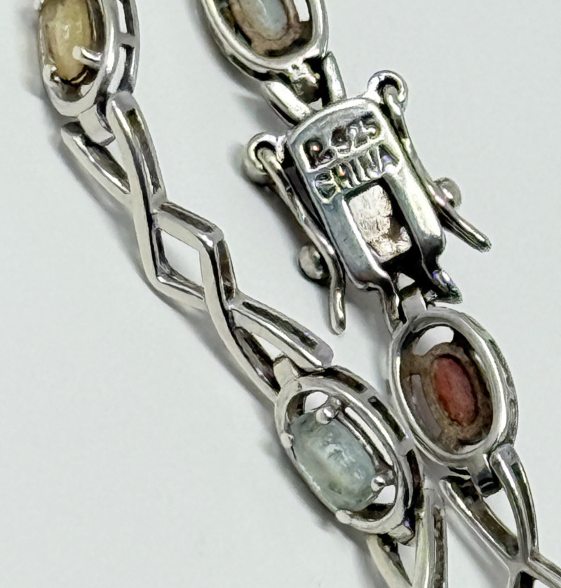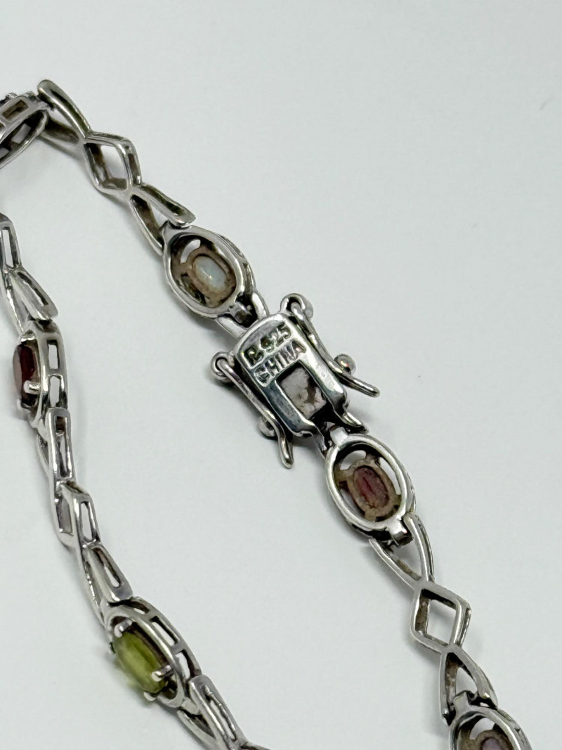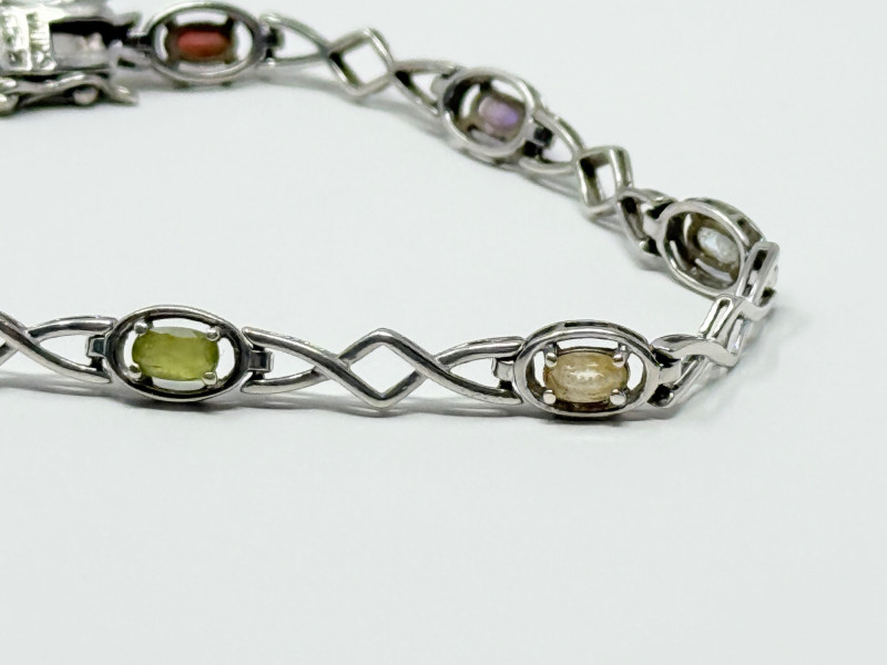 Sterling Silver Bracelet w/ Natural Stones Disclaimer: The jewelry in this auction lot has not been tested. By placing a bid, you agree to purchase the item as is, with no guarantees regarding metal quality, content, or purity. Refunds will not be issued on these factors.