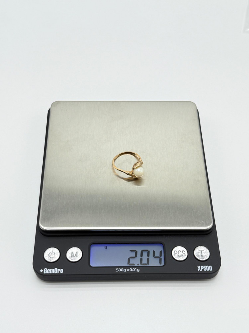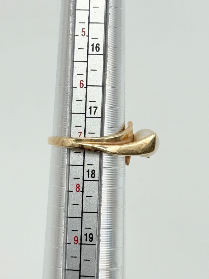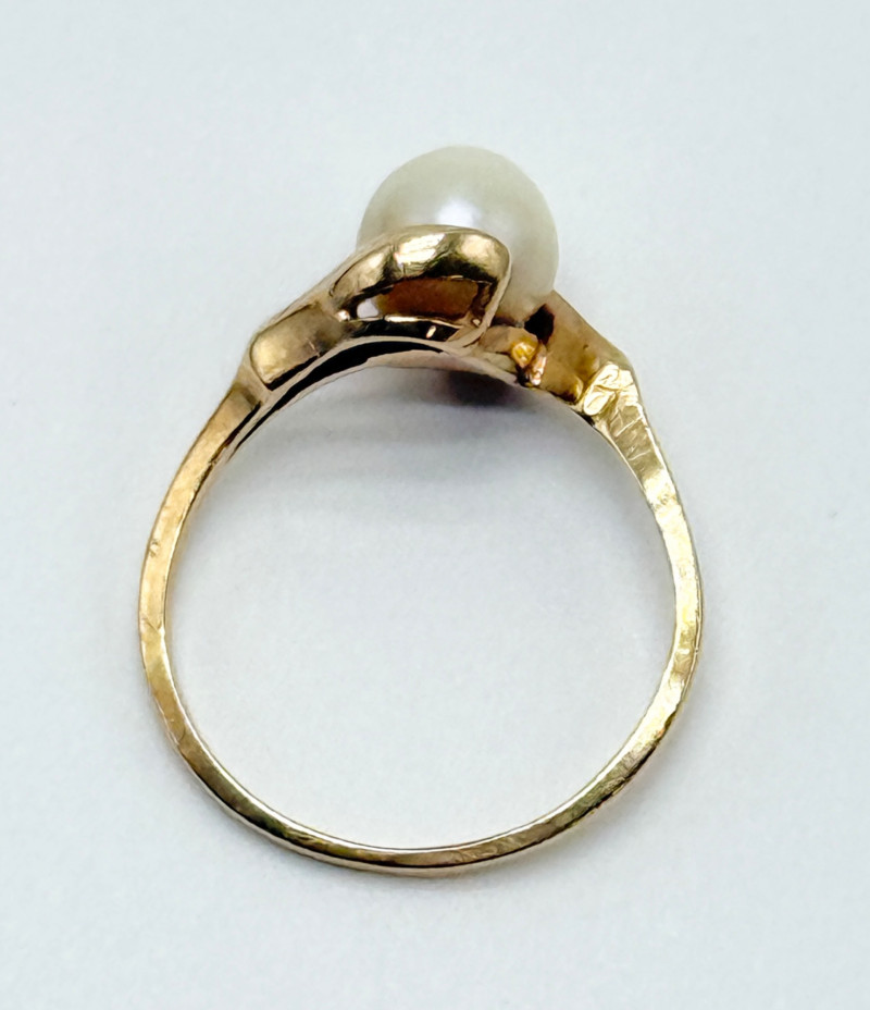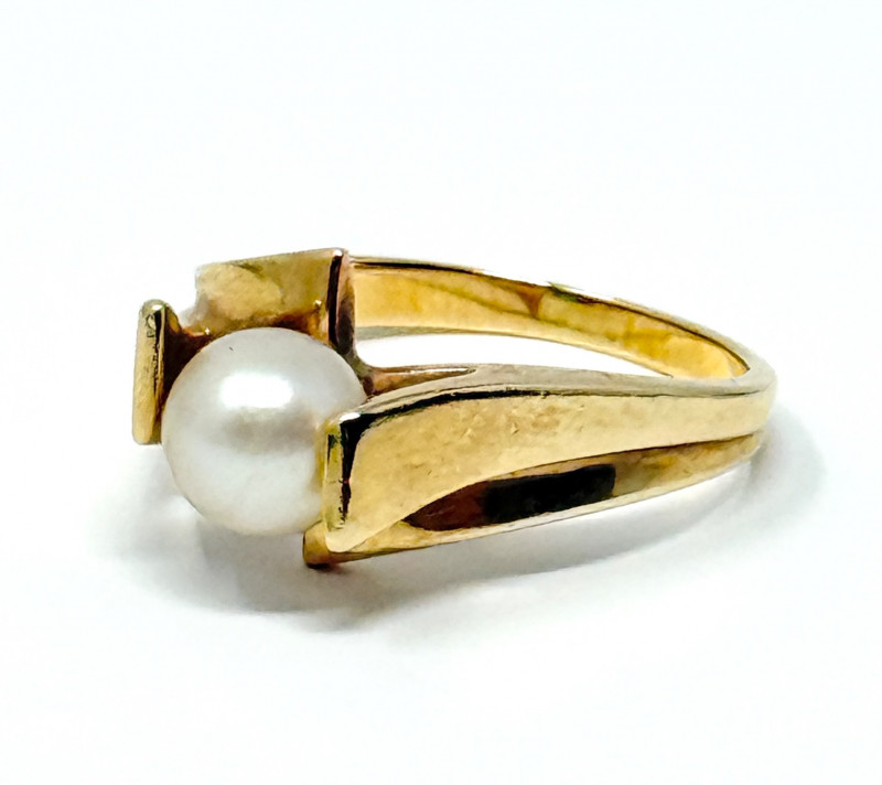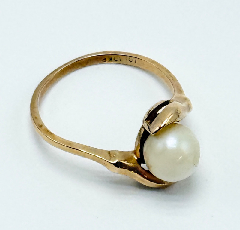10k Gold Ring w/ Cultured Pearl Disclaimer: The jewelry in this auction lot has not been tested. By placing a bid, you agree to purchase the item as is, with no guarantees regarding metal quality, content, or purity. Refunds will not be issued on these factors.