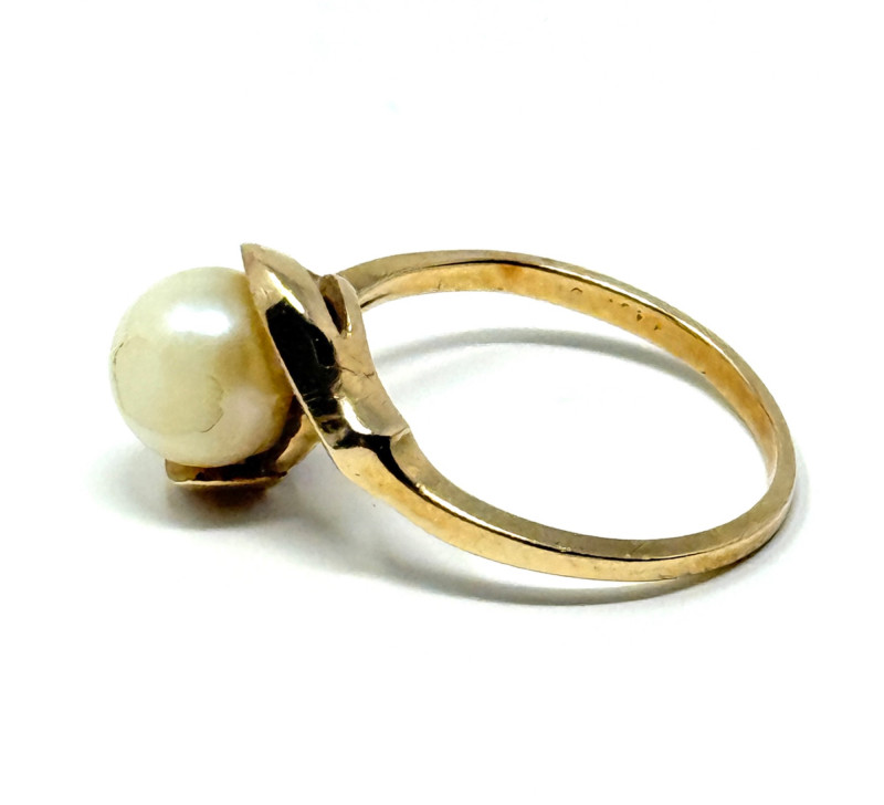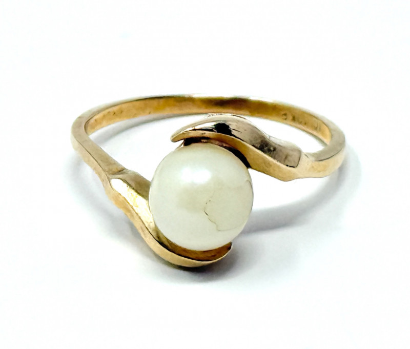 10k Gold Ring w/ Cultured Pearl Disclaimer: The jewelry in this auction lot has not been tested. By placing a bid, you agree to purchase the item as is, with no guarantees regarding metal quality, content, or purity. Refunds will not be issued on these factors.
