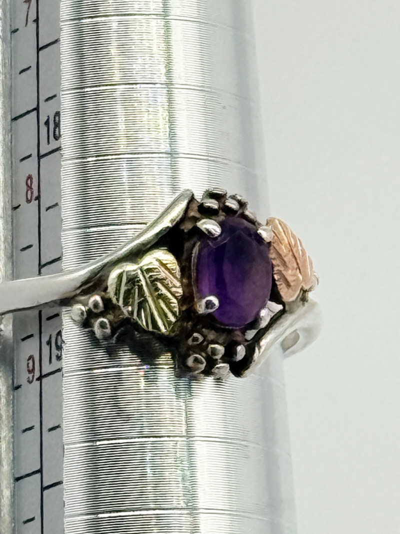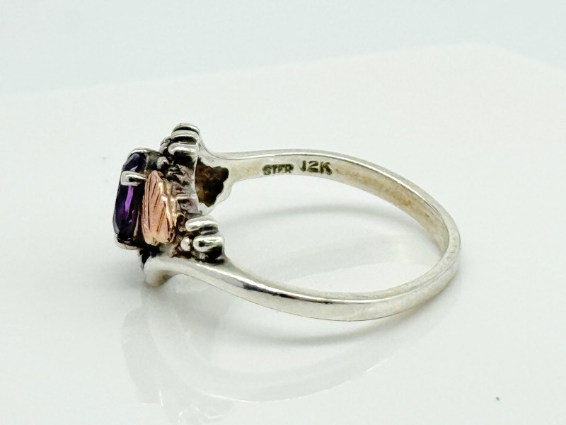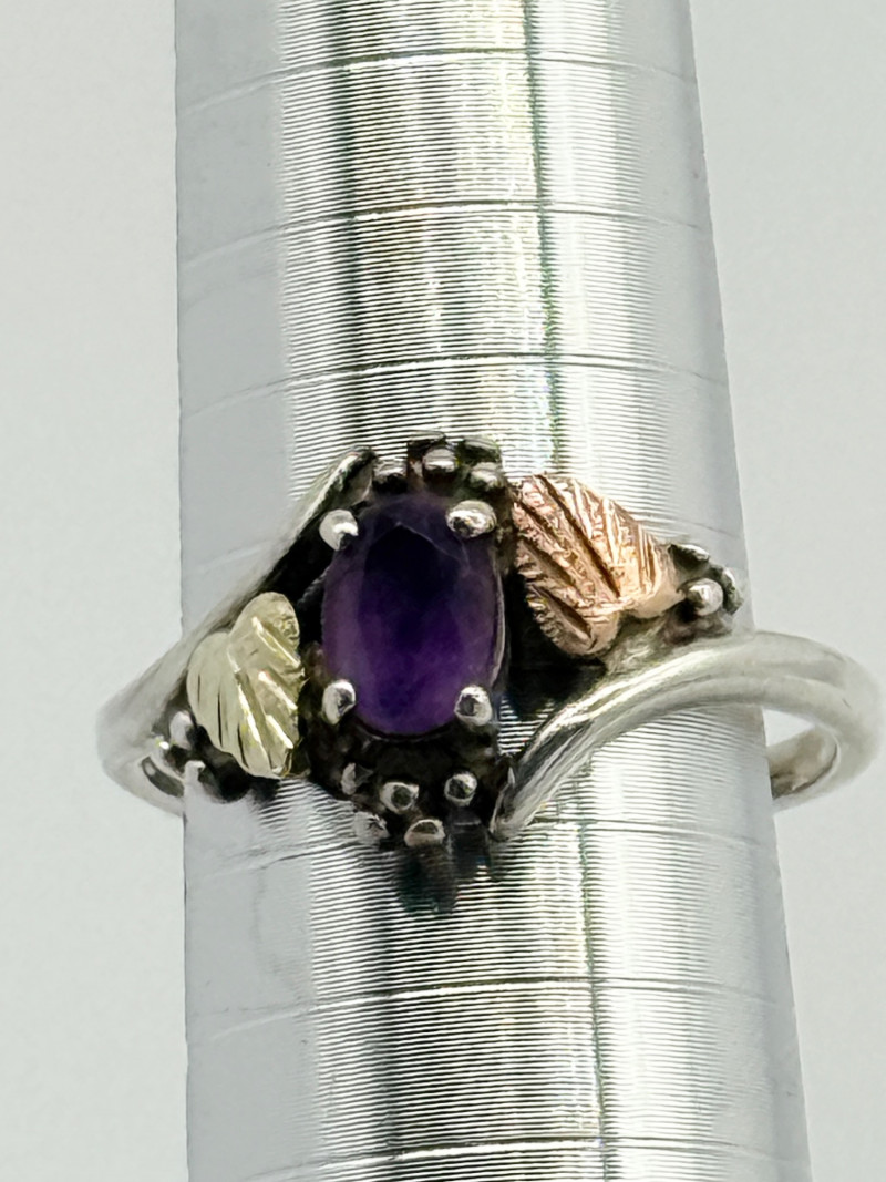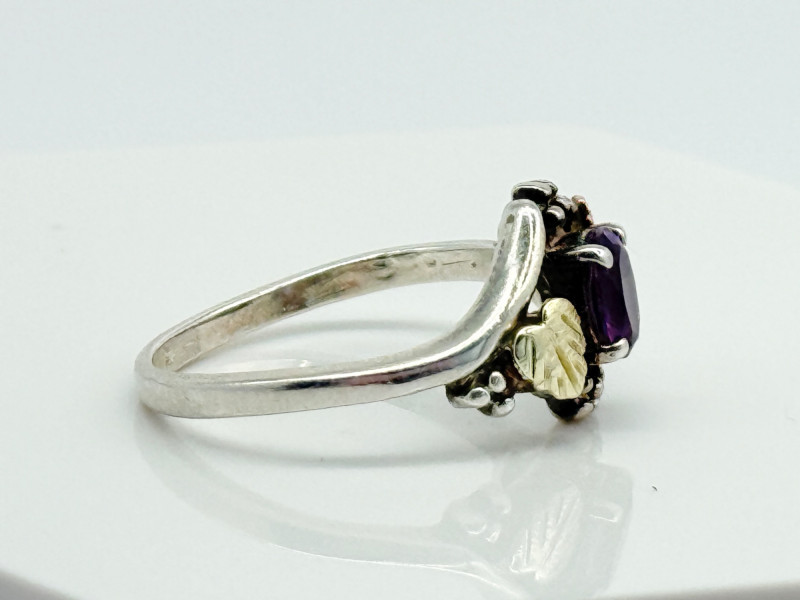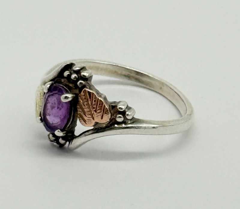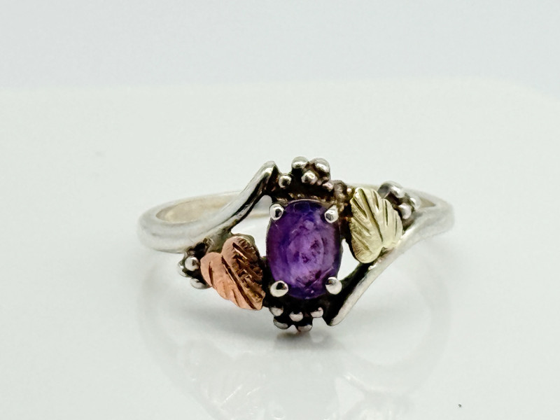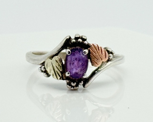 Lot # 35 - 12K Sterling Black Hills Pink & Green w/ Amethyst Ring, 3.39g