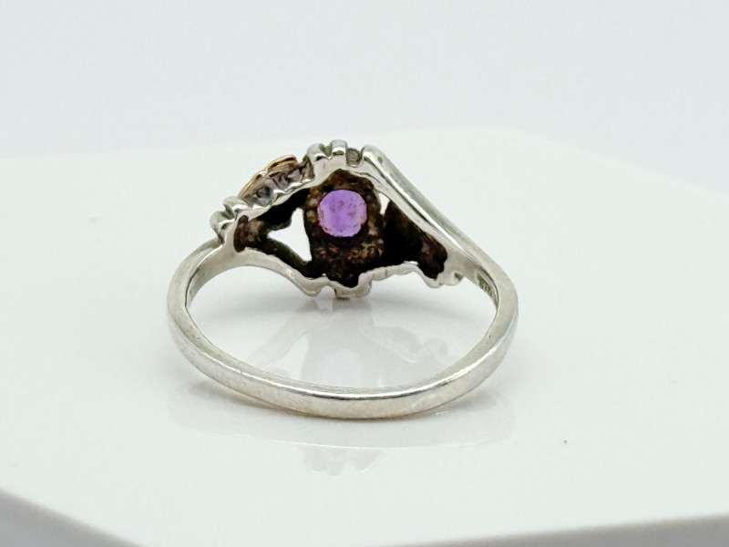 12K Sterling Black Hills Pink & Green w/ Amethyst Ring, 3.39g Disclaimer: The jewelry in this auction lot has not been tested. By placing a bid, you agree to purchase the item as is, with no guarantees regarding metal quality, content, or purity. Refunds will not be issued on these factors.
