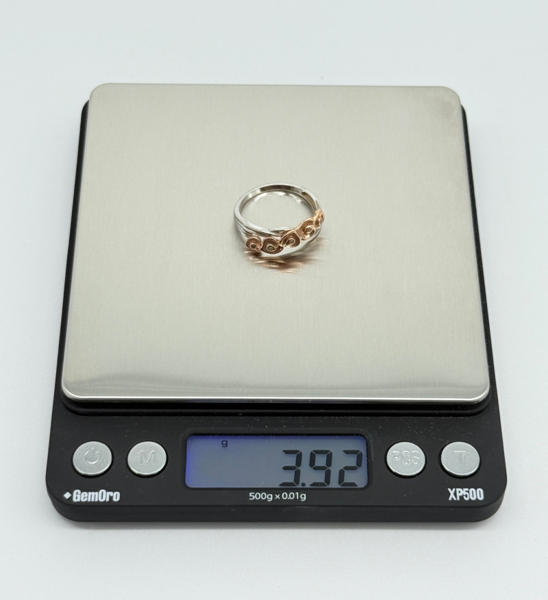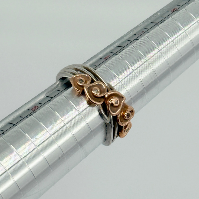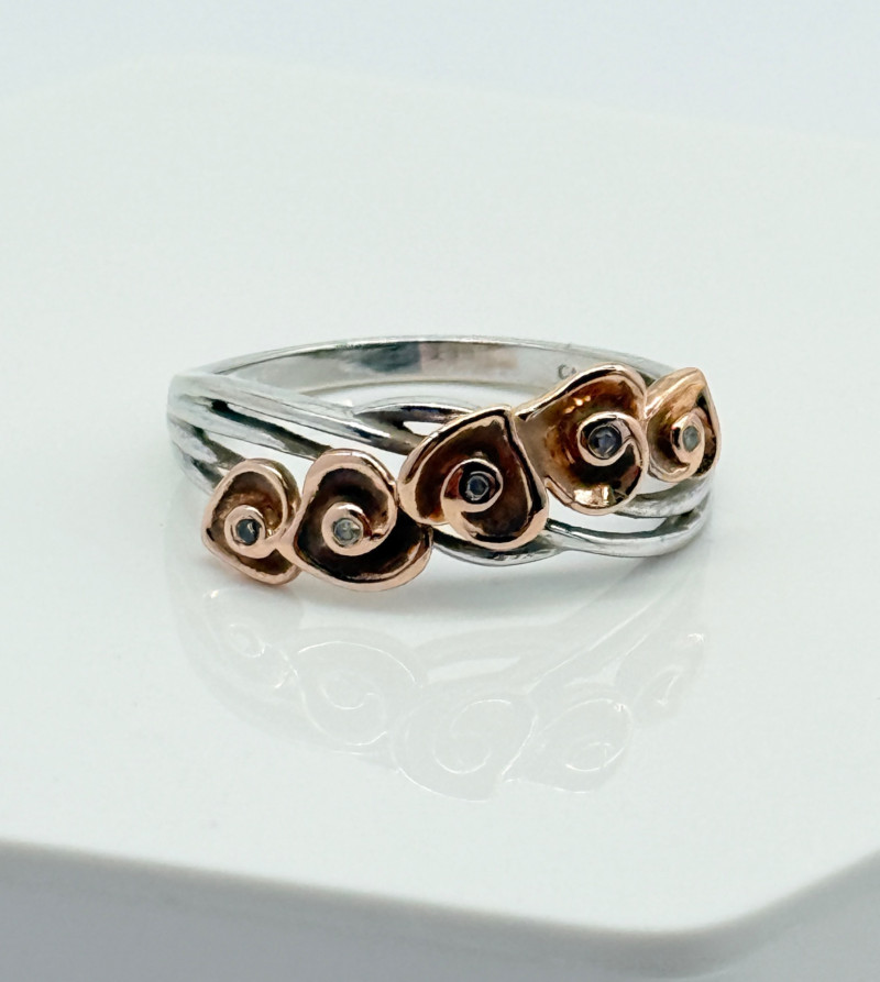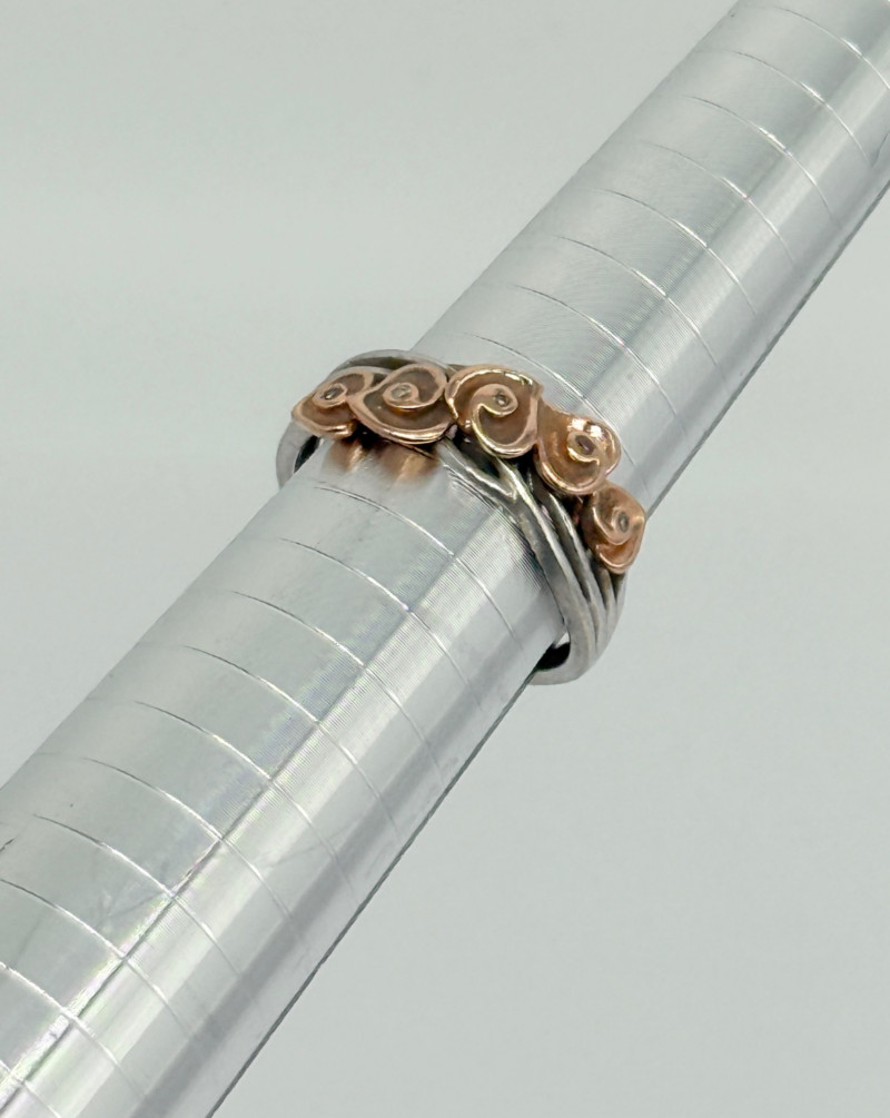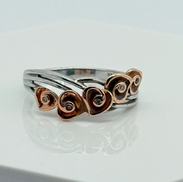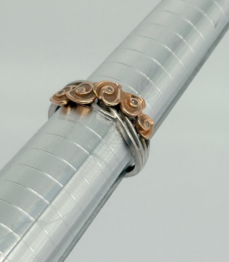 14k White Gold w/ Rose Shaped Rose Gold Diamond Ring, 3.92g Disclaimer: The jewelry in this auction lot has not been tested. By placing a bid, you agree to purchase the item as is, with no guarantees regarding metal quality, content, or purity. Refunds will not be issued on these factors.