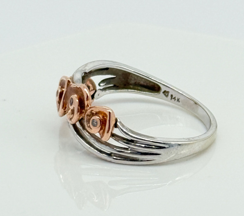 Lot # 1 - 14k White Gold w/ Rose Shaped Rose Gold Diamond Ring, 3.92g