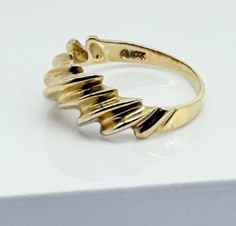 10K Yellow Gold Ribbed Dome Ring, 2.78g Disclaimer: The jewelry in this auction lot has not been tested. By placing a bid, you agree to purchase the item as is, with no guarantees regarding metal quality, content, or purity. Refunds will not be issued on these factors.