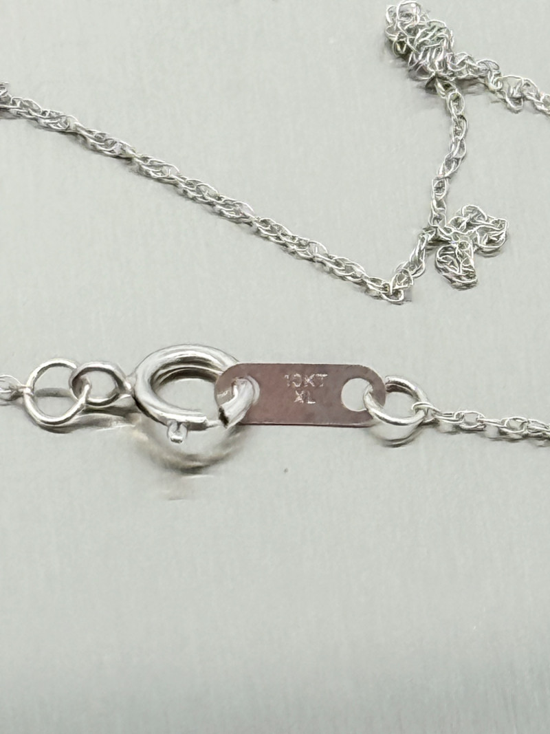 10K White Gold O-Shape 18"Chain Necklace .55g Disclaimer: The jewelry in this auction lot has not been tested. By placing a bid, you agree to purchase the item as is, with no guarantees regarding metal quality, content, or purity. Refunds will not be issued on these factors.