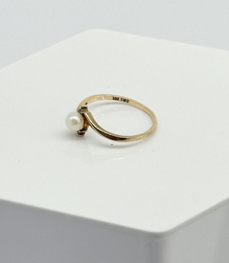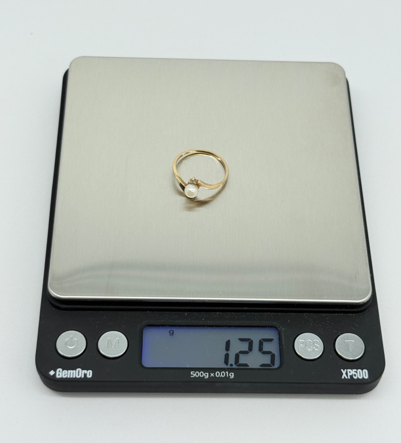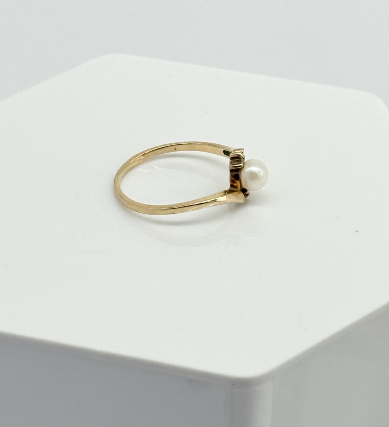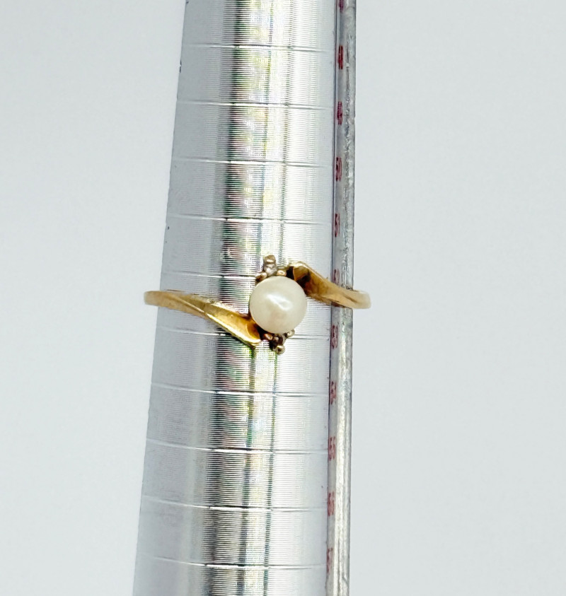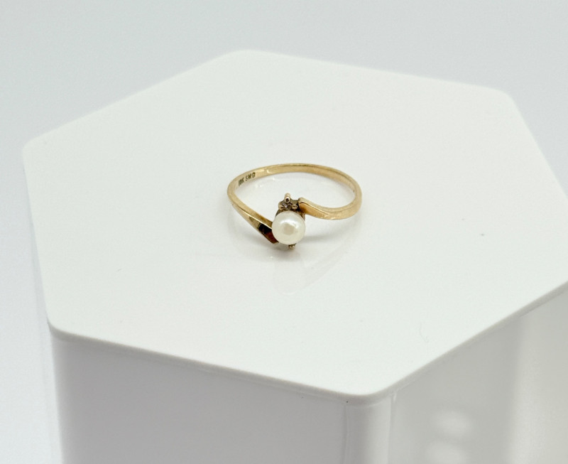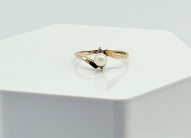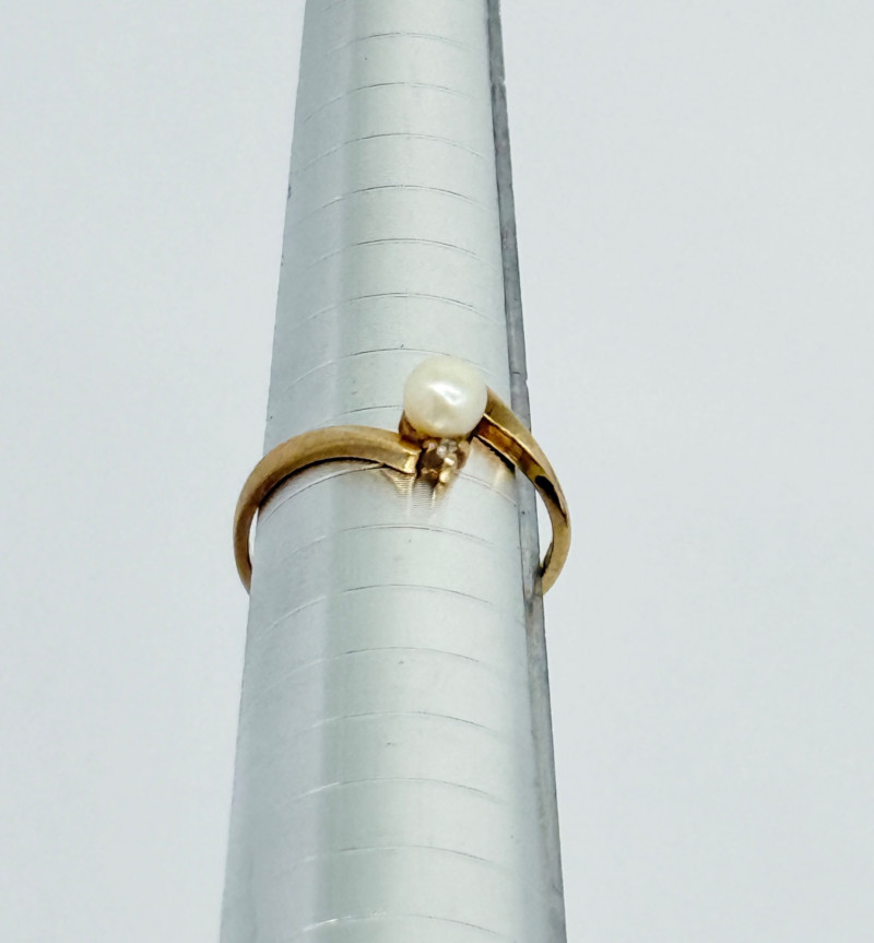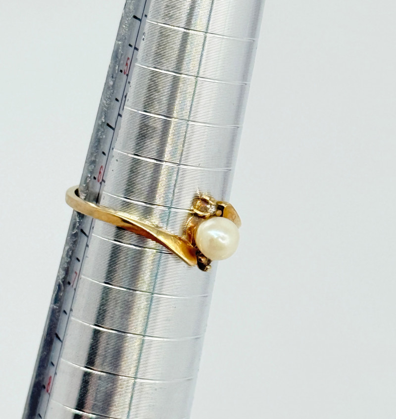 10K Gold Ring w/ Pearl & Diamond Ring, 1.25g Disclaimer: The jewelry in this auction lot has not been tested. By placing a bid, you agree to purchase the item as is, with no guarantees regarding metal quality, content, or purity. Refunds will not be issued on these factors.