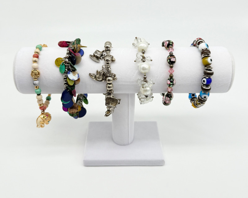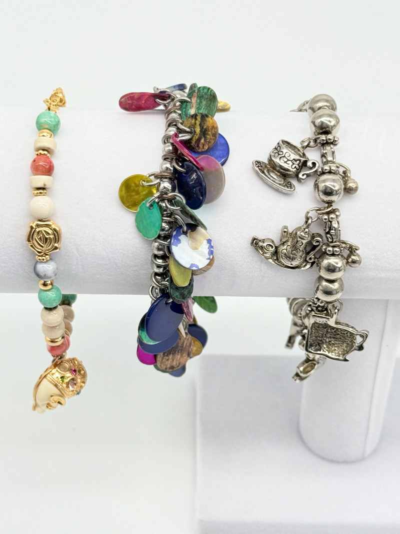 Costume Jewelry: Group of Charm Bracelets Disclaimer: The jewelry in this auction lot has not been tested. By placing a bid, you agree to purchase the item as is, with no guarantees regarding metal quality, content, or purity. Refunds will not be issued on these factors.