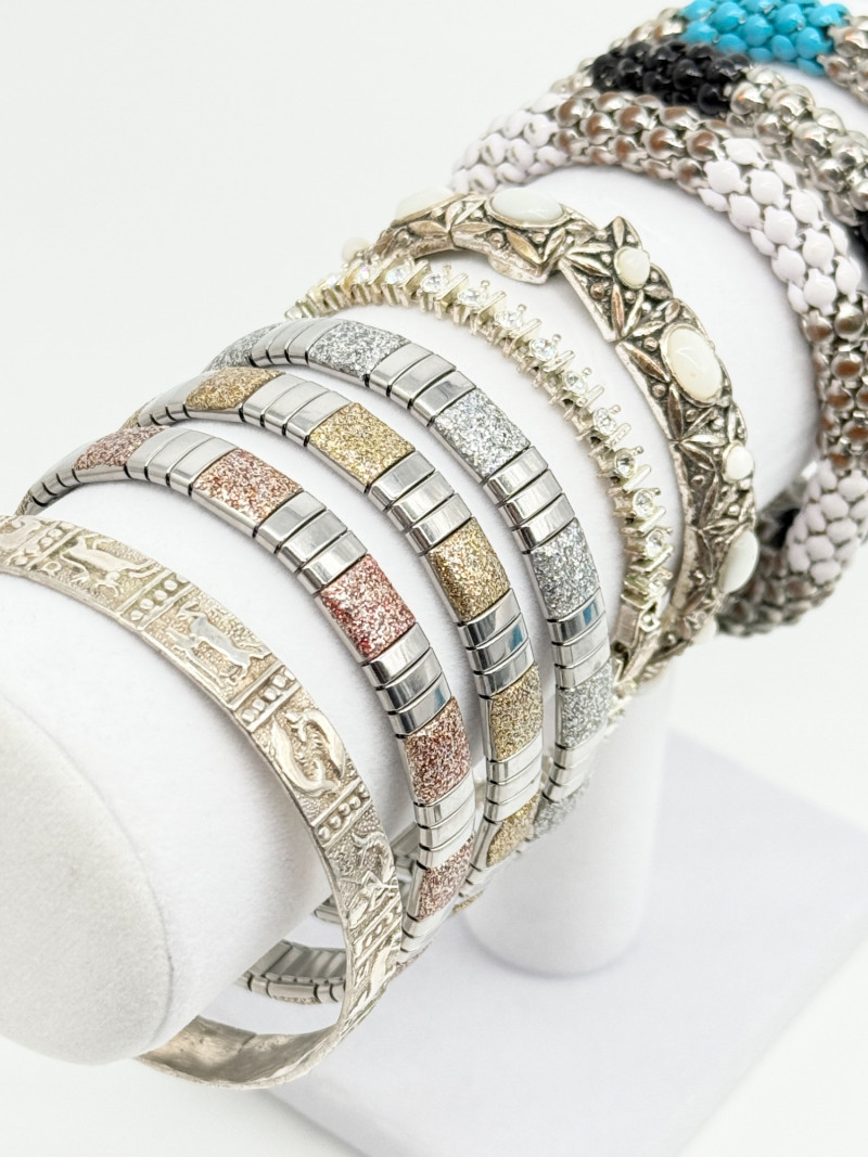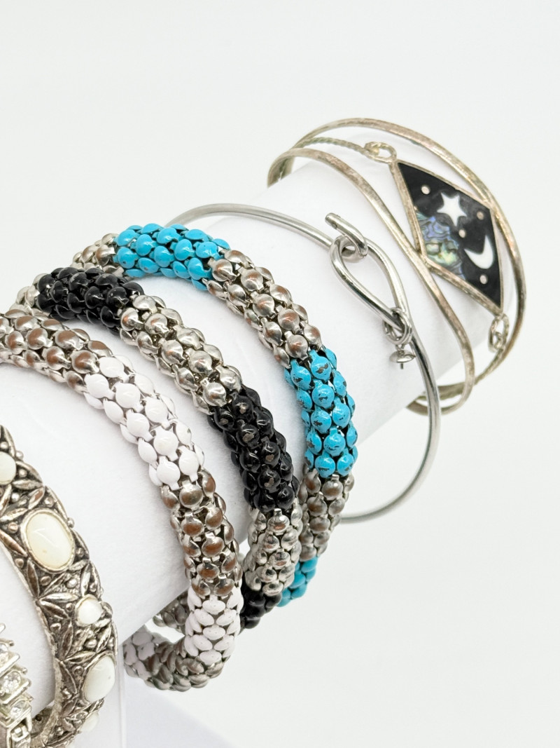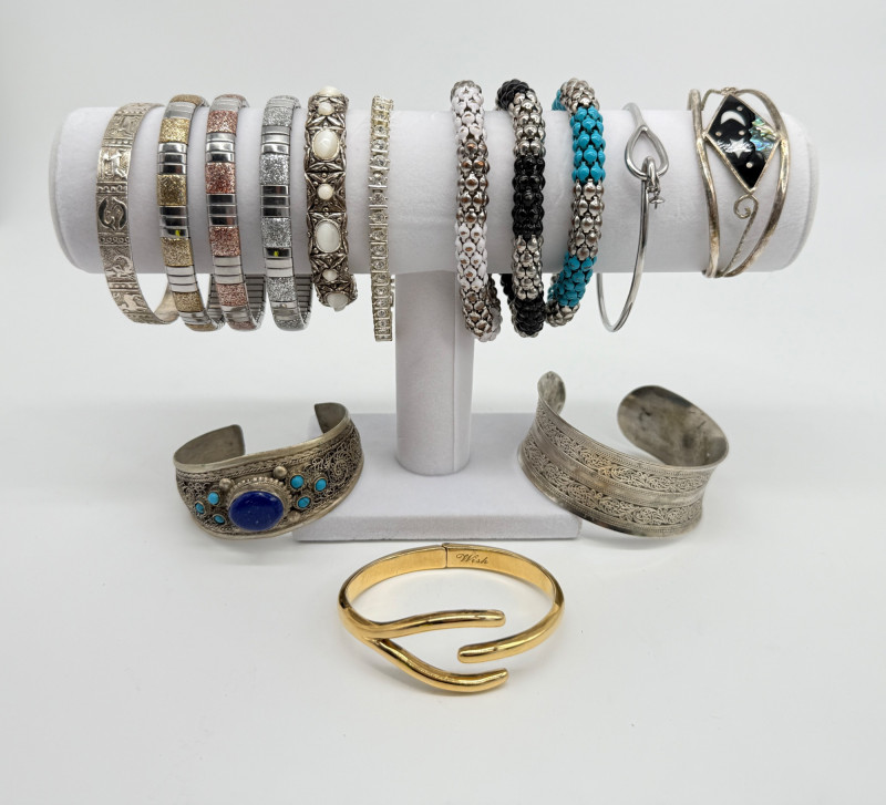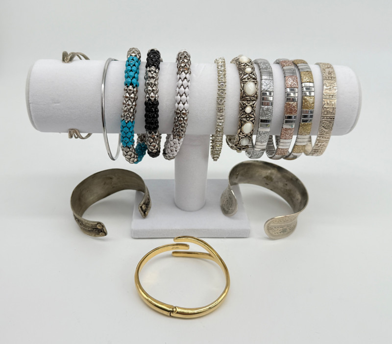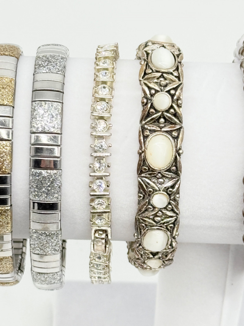 Costume Jewelry: Mix of Bracelets Disclaimer: The jewelry in this auction lot has not been tested. By placing a bid, you agree to purchase the item as is, with no guarantees regarding metal quality, content, or purity. Refunds will not be issued on these factors.