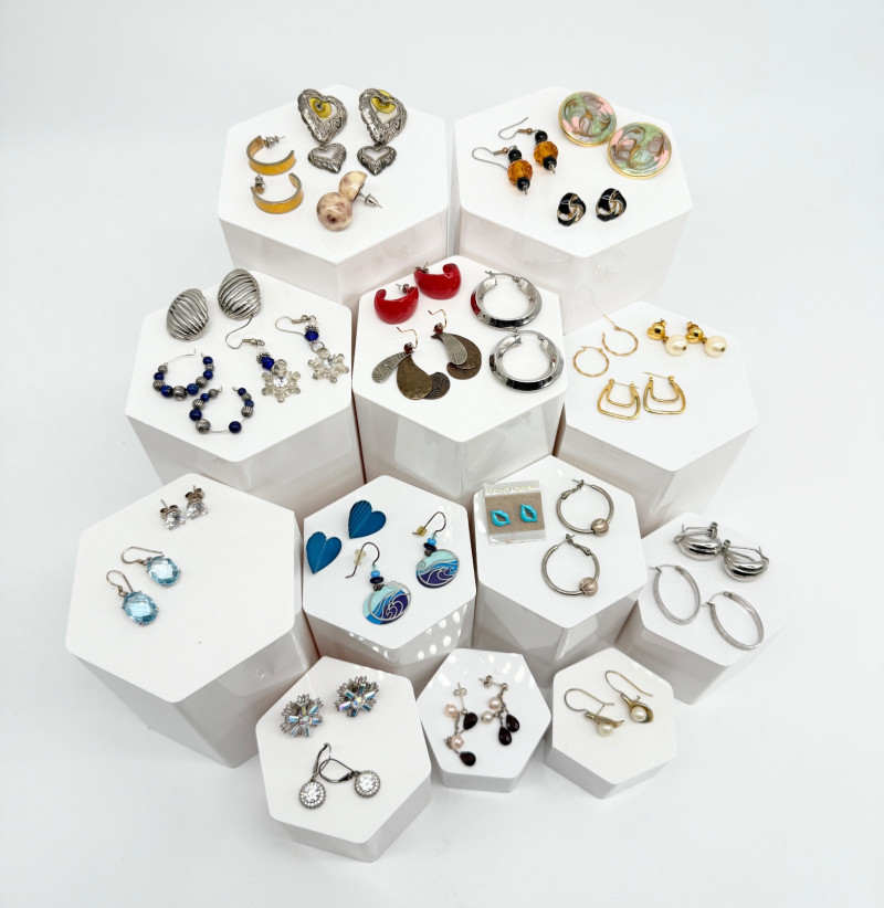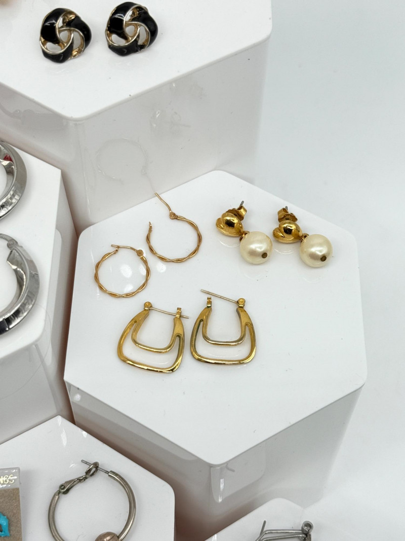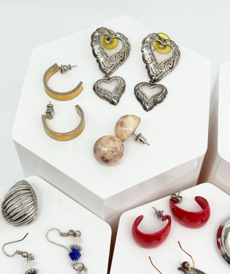Costume Jewelry: Large Group of Earrings Disclaimer: The jewelry in this auction lot has not been tested. By placing a bid, you agree to purchase the item as is, with no guarantees regarding metal quality, content, or purity. Refunds will not be issued on these factors.