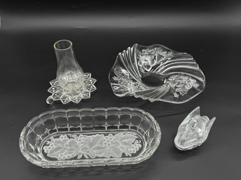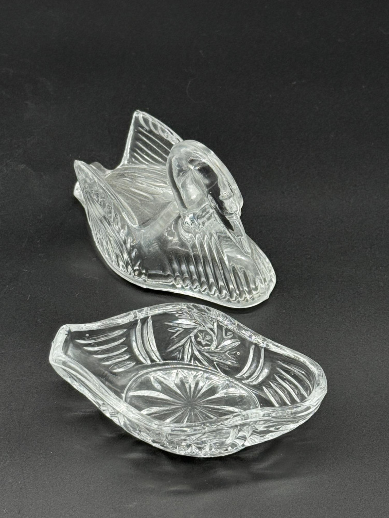 Glass Candle Lamp, Bon Bon Dish, Swan Trinket & Relish Dish