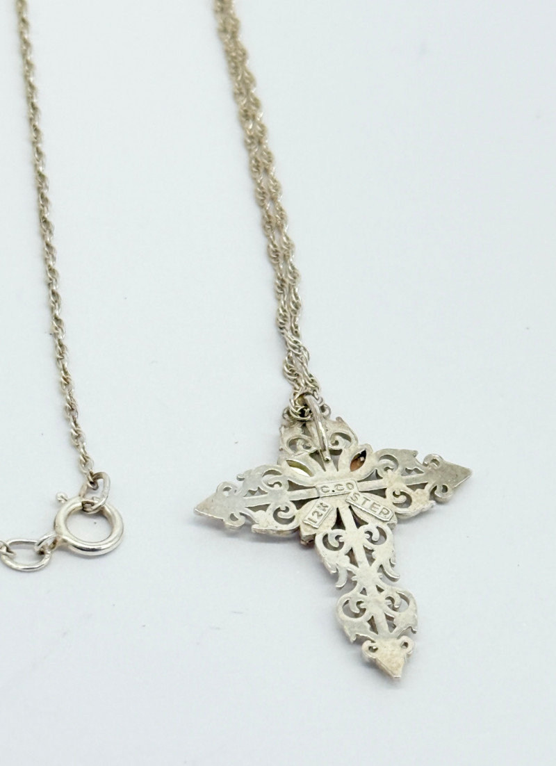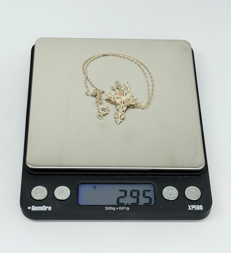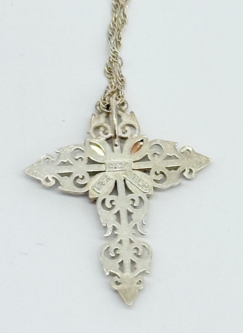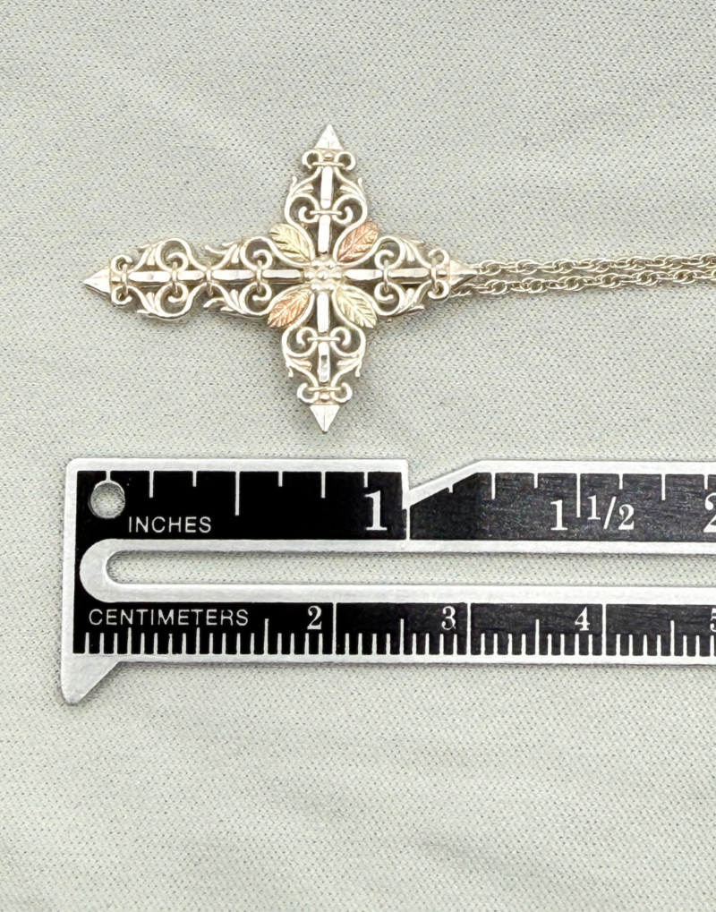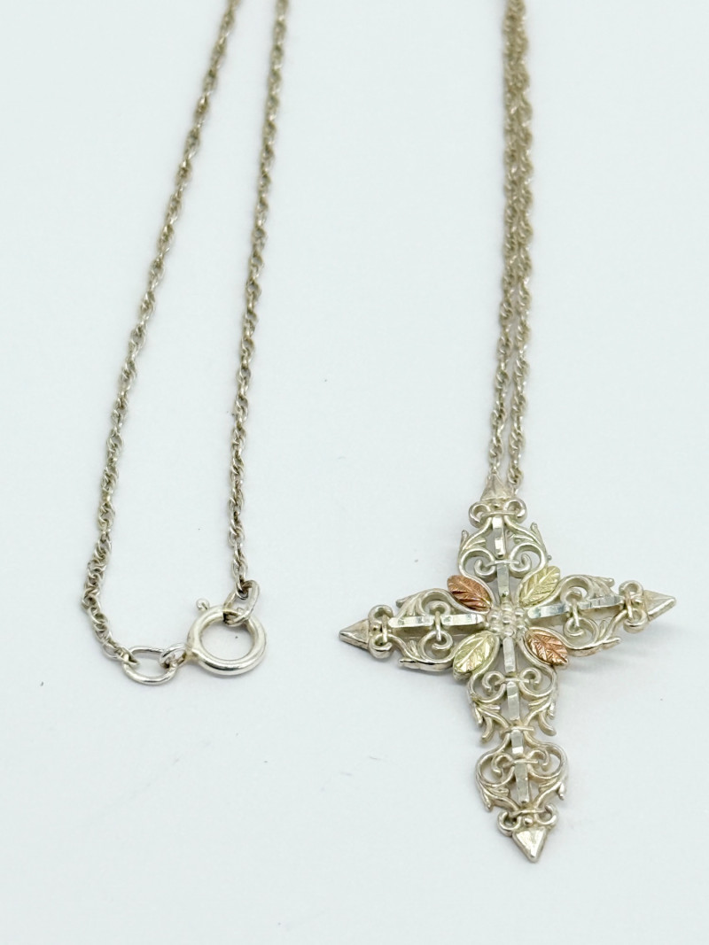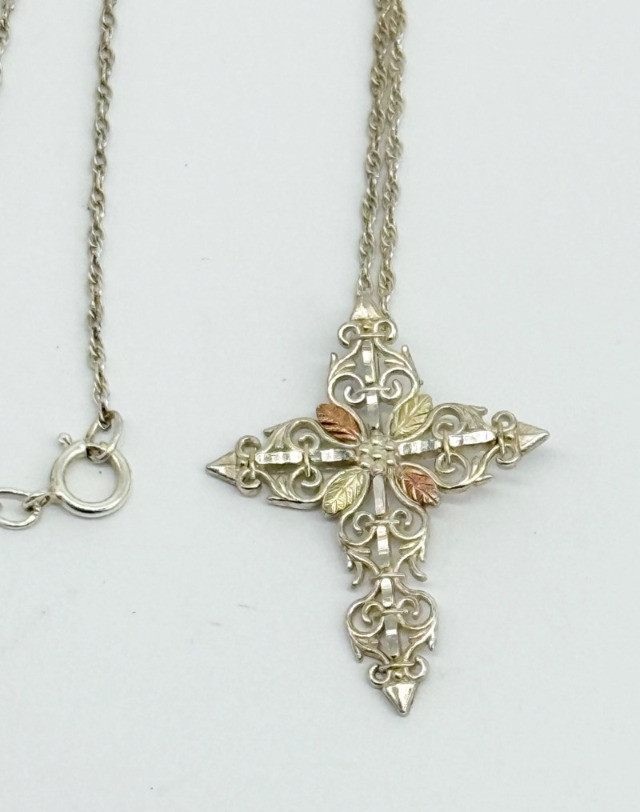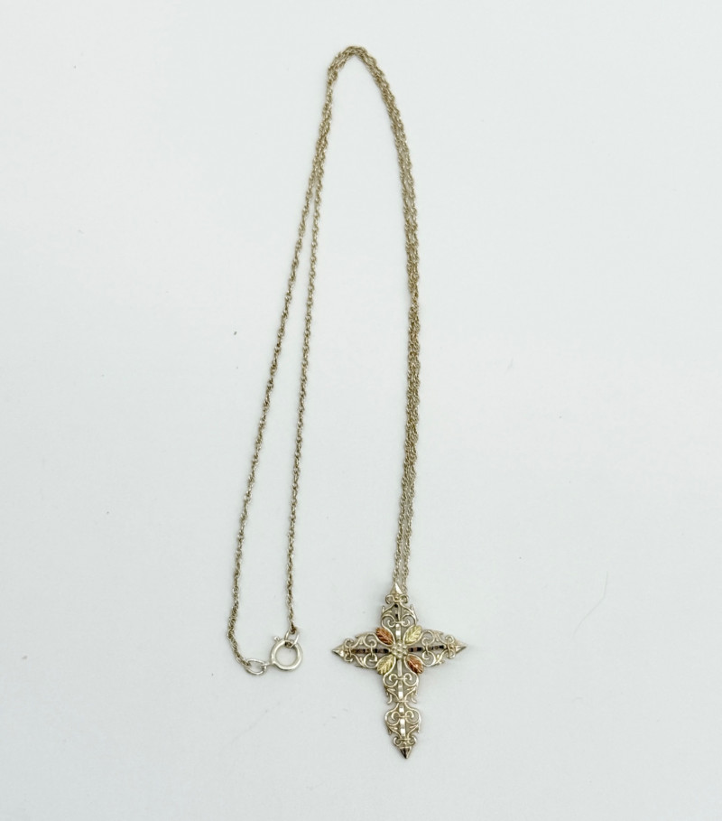 Coleman Co Black Hills 12K Gold / Sterling Cross Necklace Disclaimer: The jewelry in this auction lot has not been tested. By placing a bid, you agree to purchase the item as is, with no guarantees regarding metal quality, content, or purity. Refunds will not be issued on these factors.