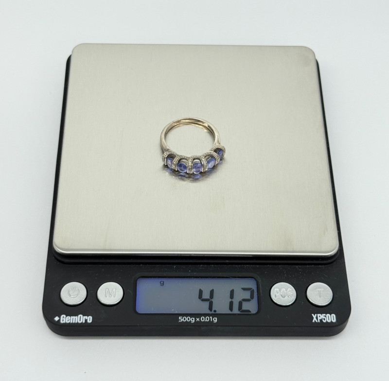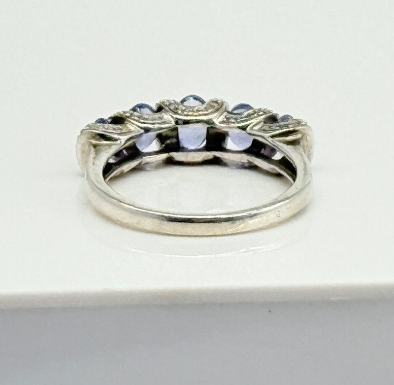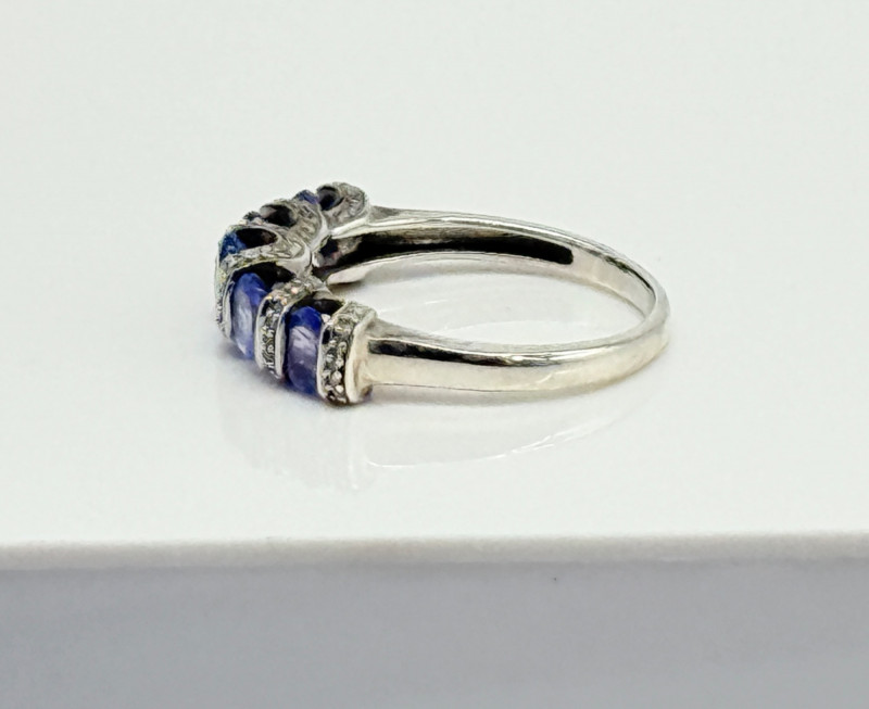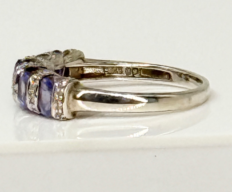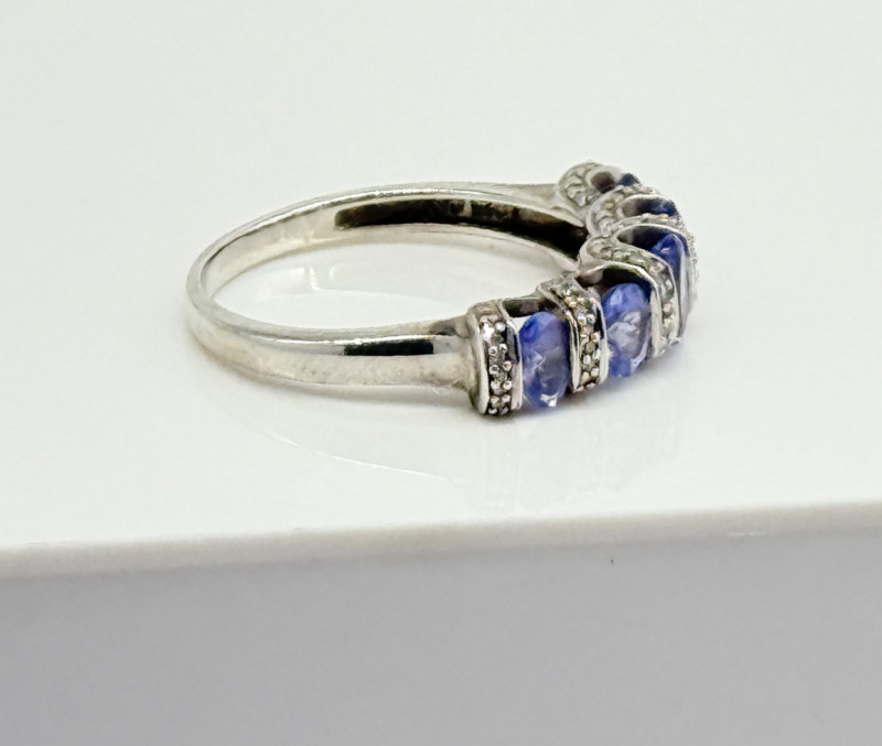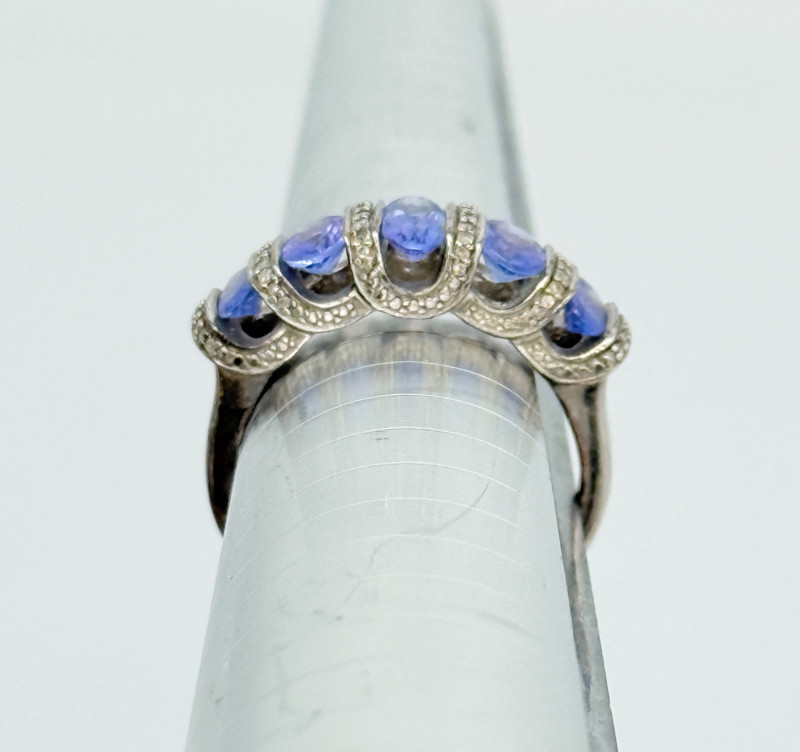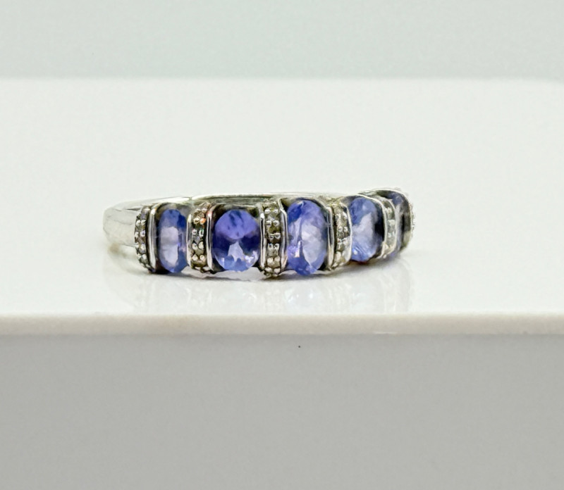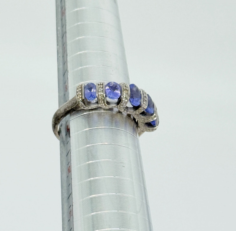 Sterling Tanzanite Diamond Ring , 4.12g Disclaimer: The jewelry in this auction lot has not been tested. By placing a bid, you agree to purchase the item as is, with no guarantees regarding metal quality, content, or purity. Refunds will not be issued on these factors.