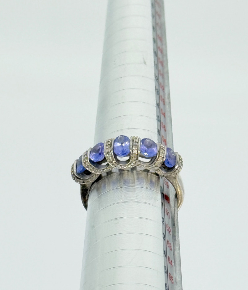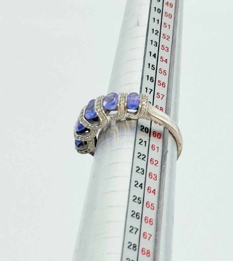 Lot # 27 - Sterling Tanzanite Diamond Ring , 4.12g