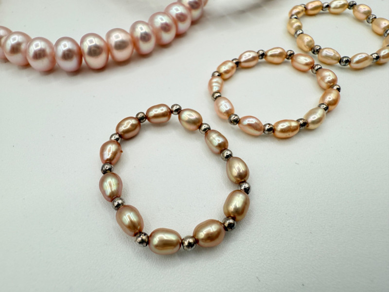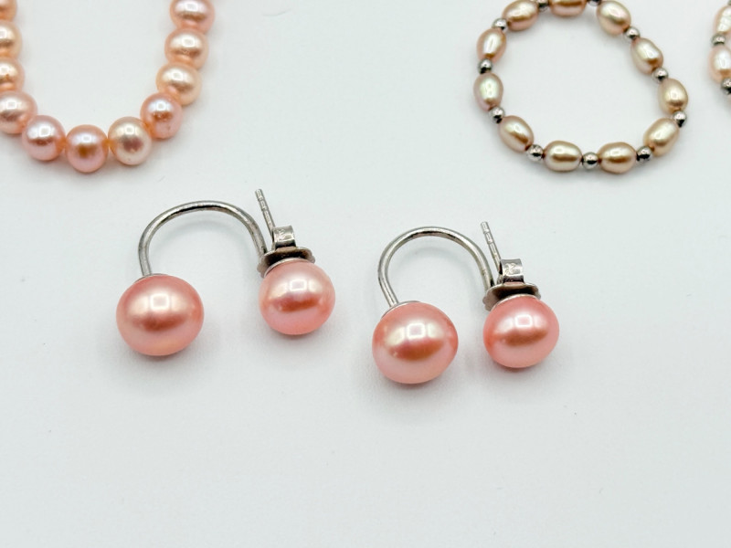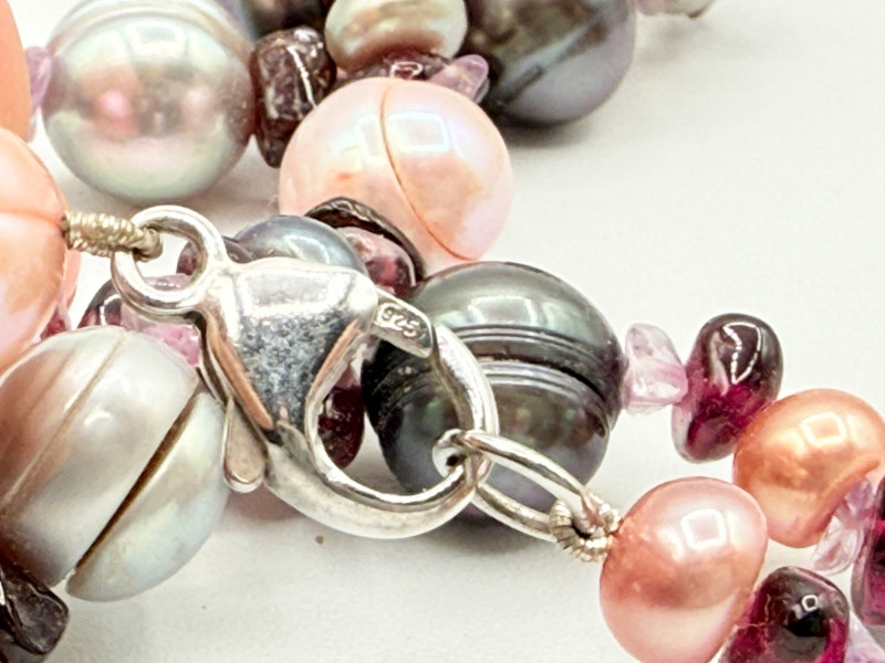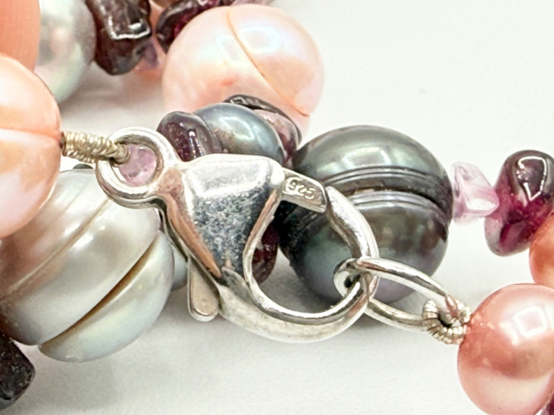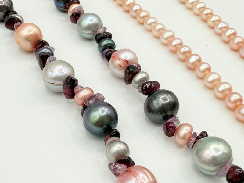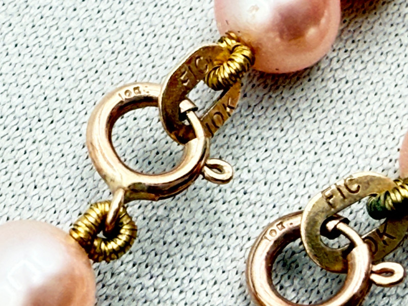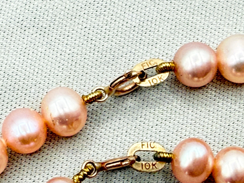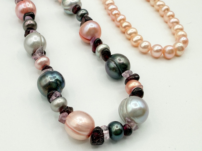 10K Clasp Pink Pearl + Multi Colored Pearl Gemstone Necklace & More Disclaimer: The jewelry in this auction lot has not been tested. By placing a bid, you agree to purchase the item as is, with no guarantees regarding metal quality, content, or purity. Refunds will not be issued on these factors.