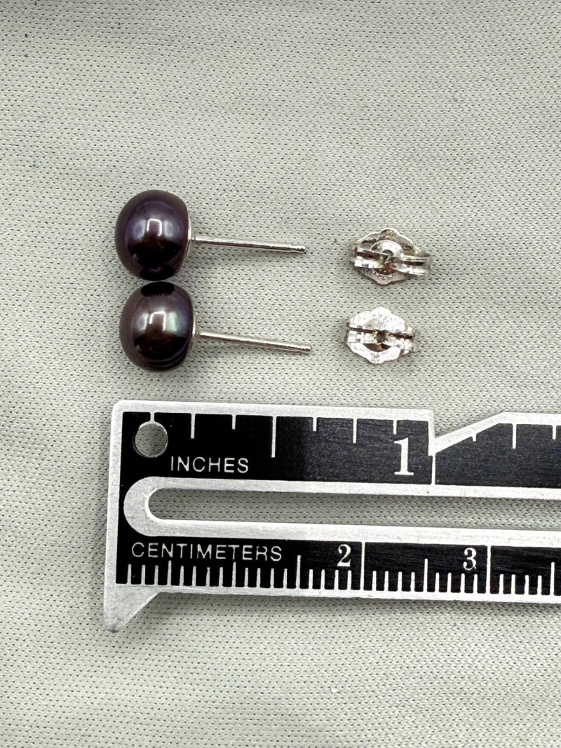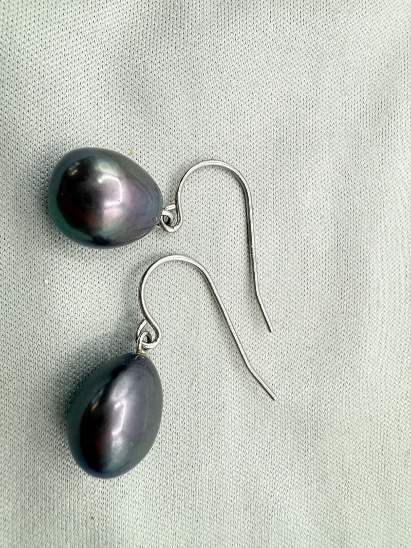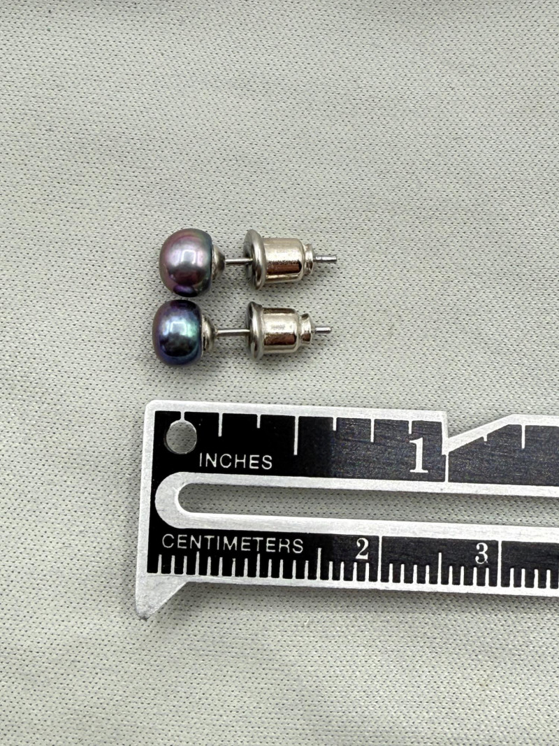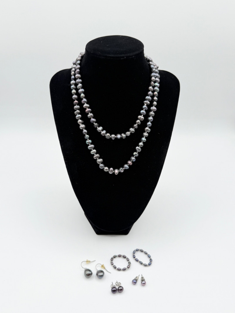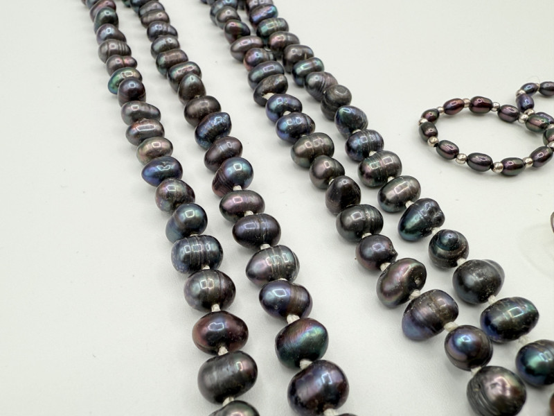 Cultured Tahitian Pearl Necklace, Rings & Sterling Earrings Disclaimer: The jewelry in this auction lot has not been tested. By placing a bid, you agree to purchase the item as is, with no guarantees regarding metal quality, content, or purity. Refunds will not be issued on these factors.