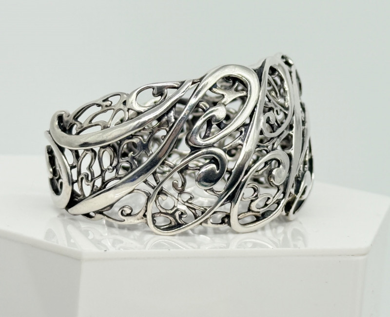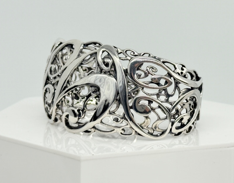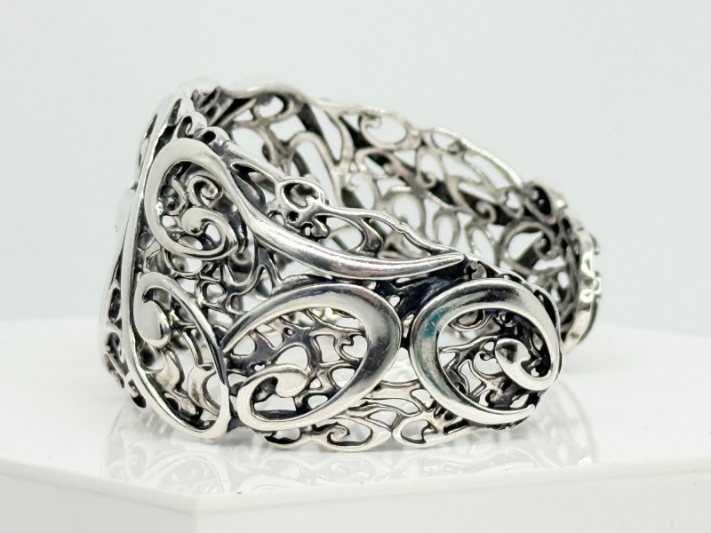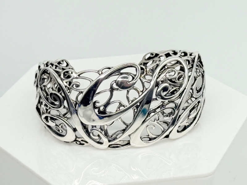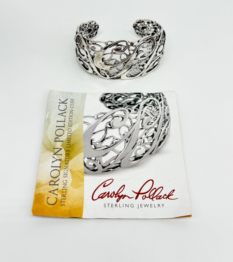 Carolyn Pollack Sterling Signature Limited Edition Cuff Disclaimer: The jewelry in this auction lot has not been tested. By placing a bid, you agree to purchase the item as is, with no guarantees regarding metal quality, content, or purity. Refunds will not be issued on these factors.