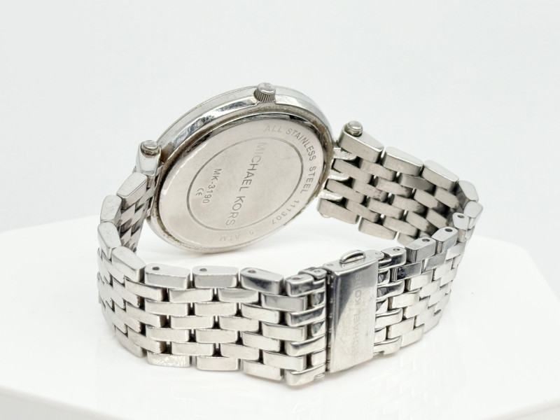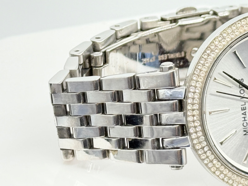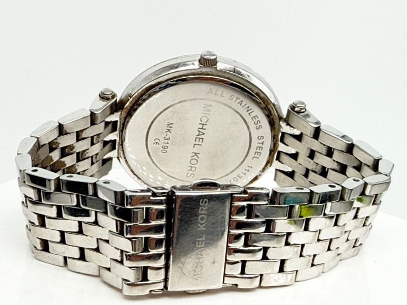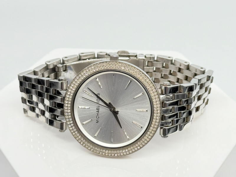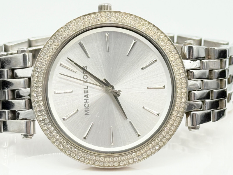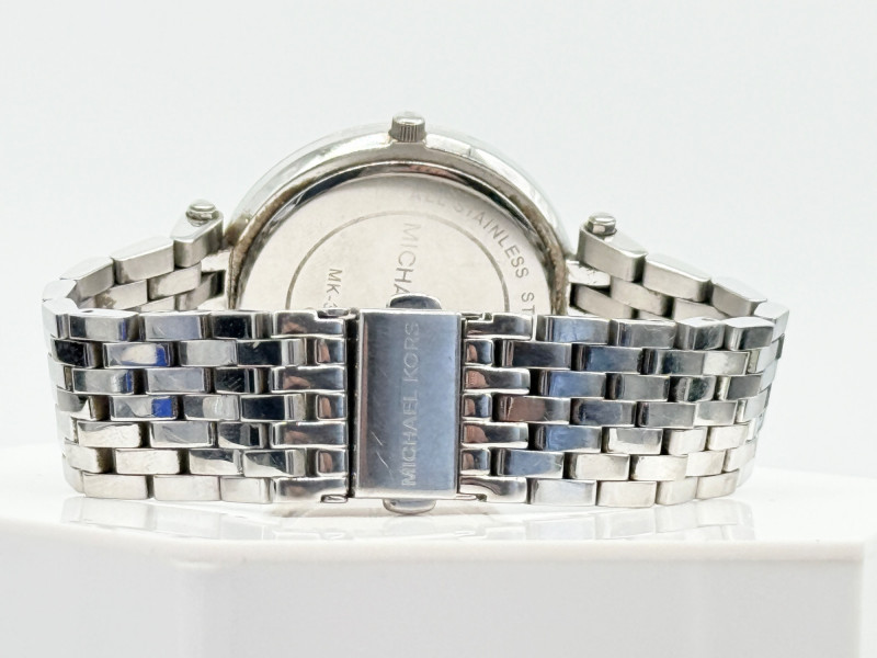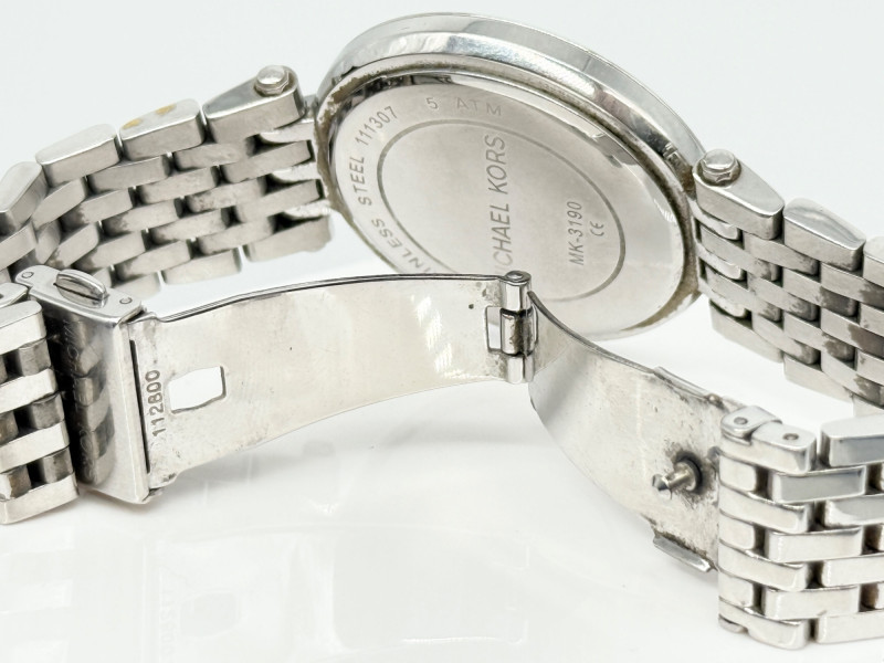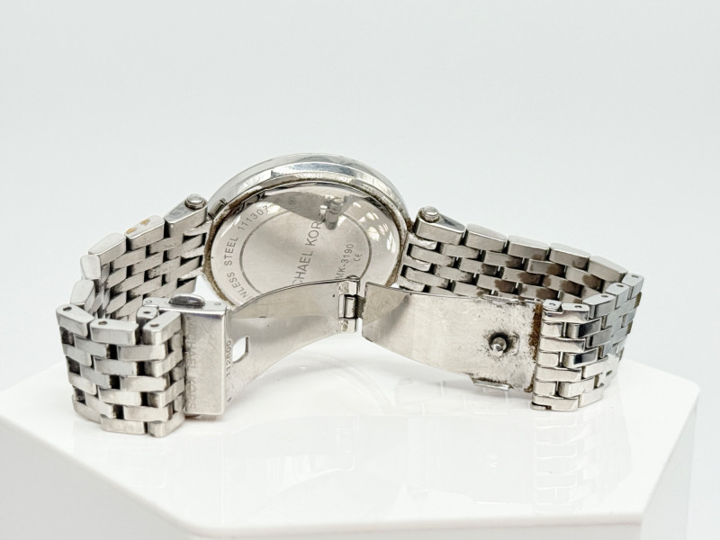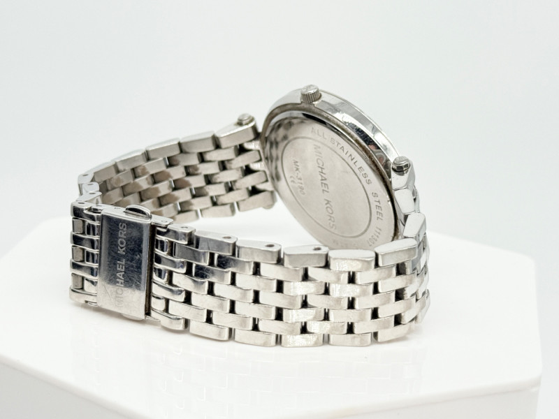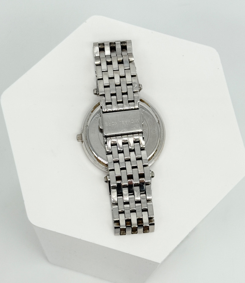 Lot # 19 - Michael Kros Stainless Steel Watch + Matchstick Pave Silver-Tone Cuff